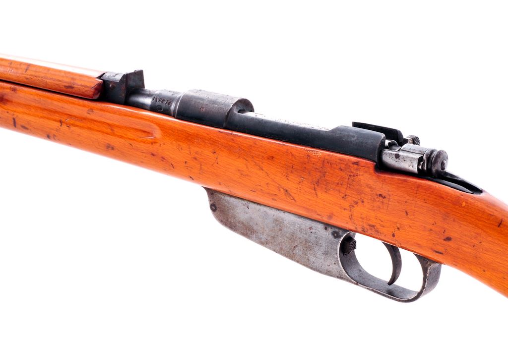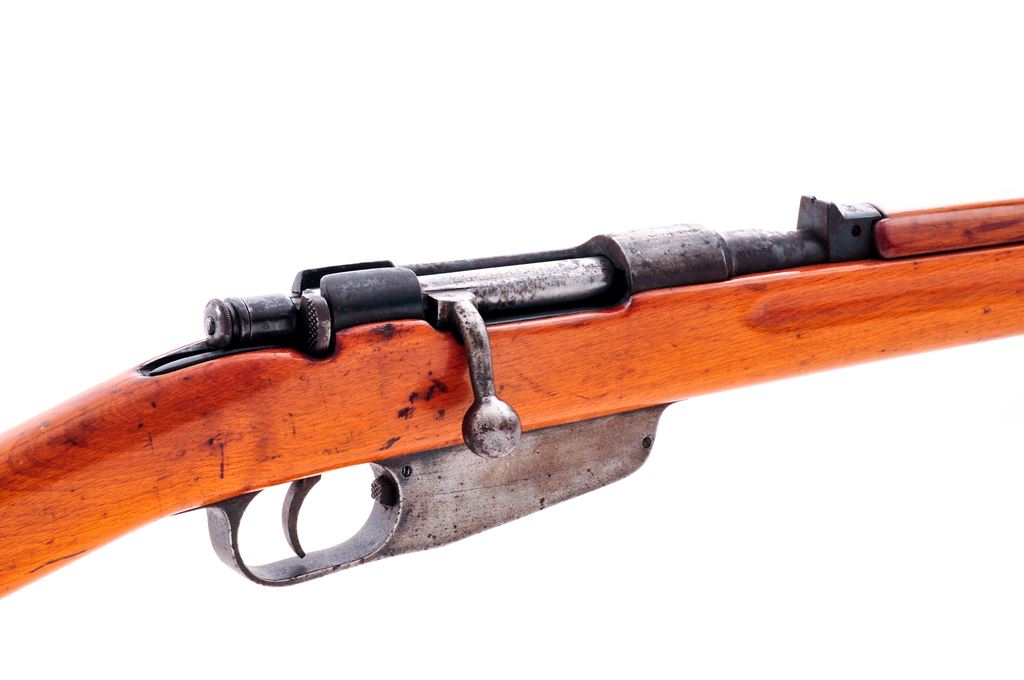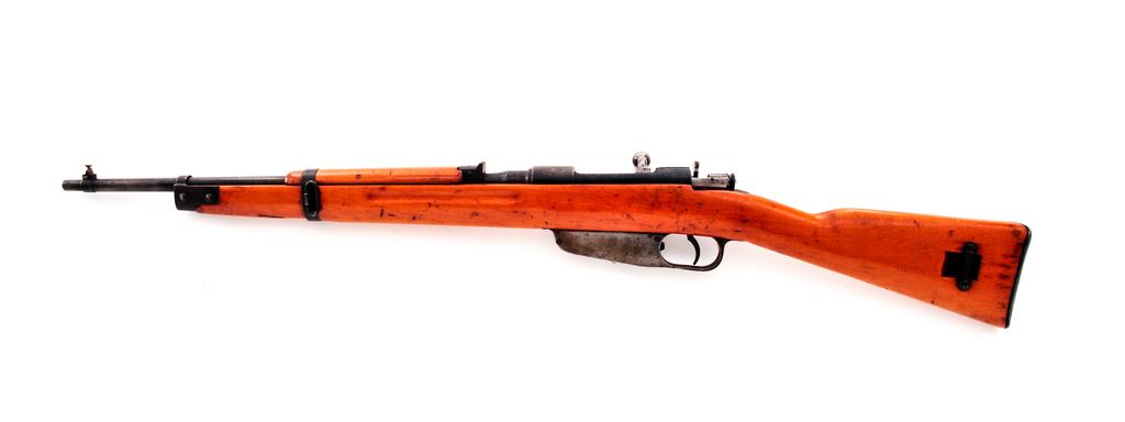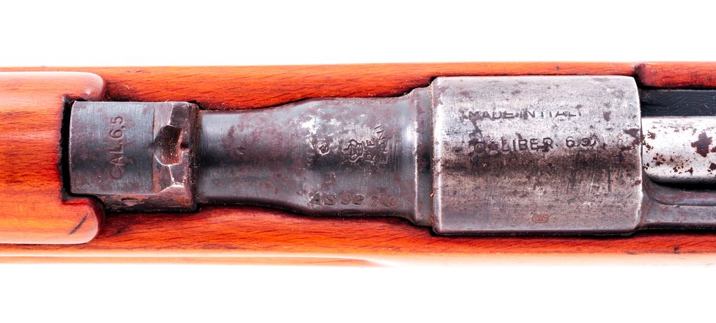 Italian Carcano Model 1938 Short Rifle, #AS9274, mfg'd at Terni Arsenal, 6.5x52mm cal., 21'' barrel, blue finish, straight grip hardwood stock, post type front sight, fixed ''V''-notched rear sight, with various Italian proofmarks throughout. Right side of barrel is dated 1940; top of barrel ''(crown) / RE / Terni''; receiver ring ''Made In Italy / Caliber 6.5''. Condition is good. Metal retains approx. 40% toning blue with spots of dark freckling; rear portion of barrel and rear sight with spots of moderate pitting. Stock has been lightly sanded with an added coat of varnish showing age and wear consistent with the rest of the rifle. Front sight is damaged at the left side. Good action and bore; bore with nice rifling. Est.: $125-$225. (C&R)