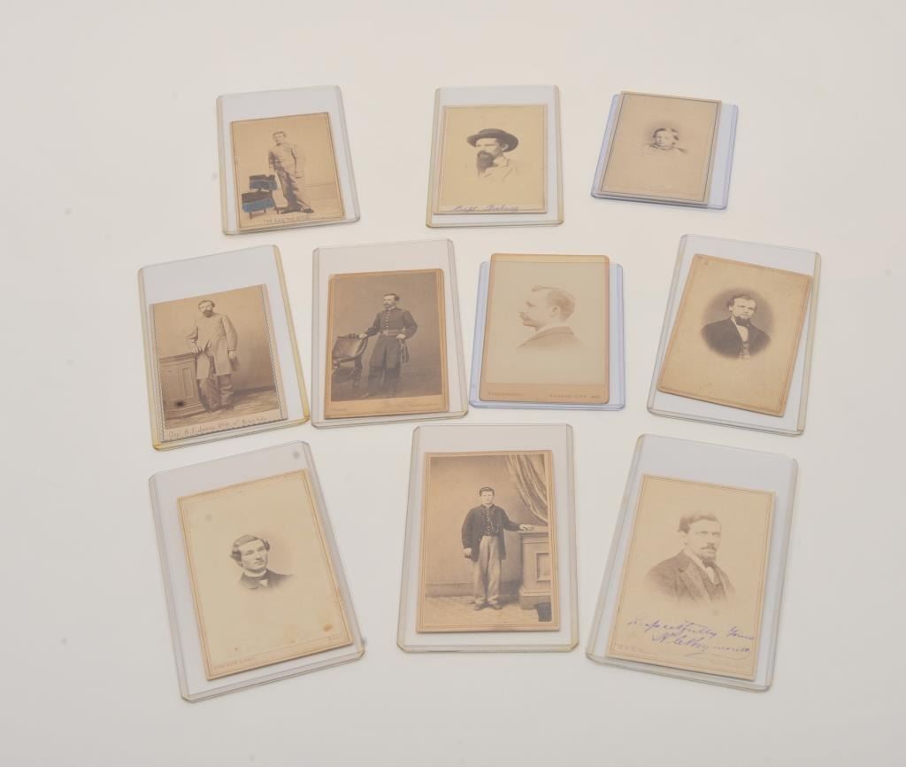 Lot of 10 Civil War era CDVs, some with names (some Northern, some Southern) and stamps; in protective sleeves; researchable. Est.: $75-$150.