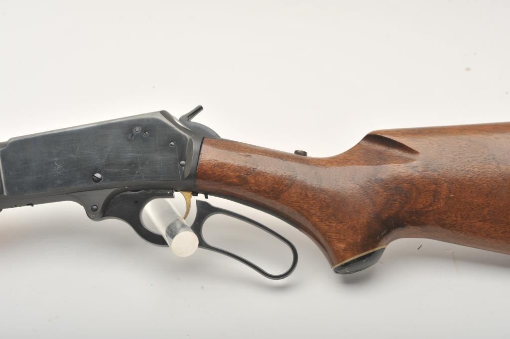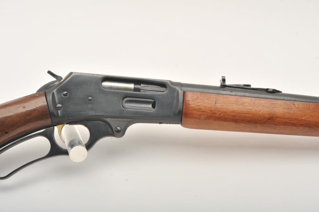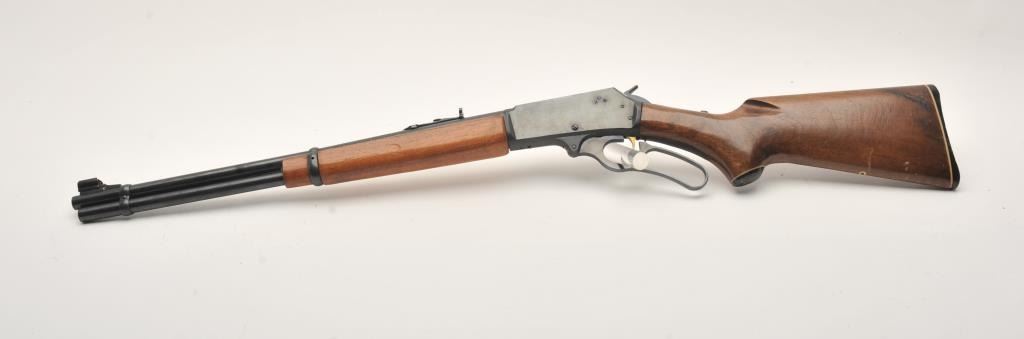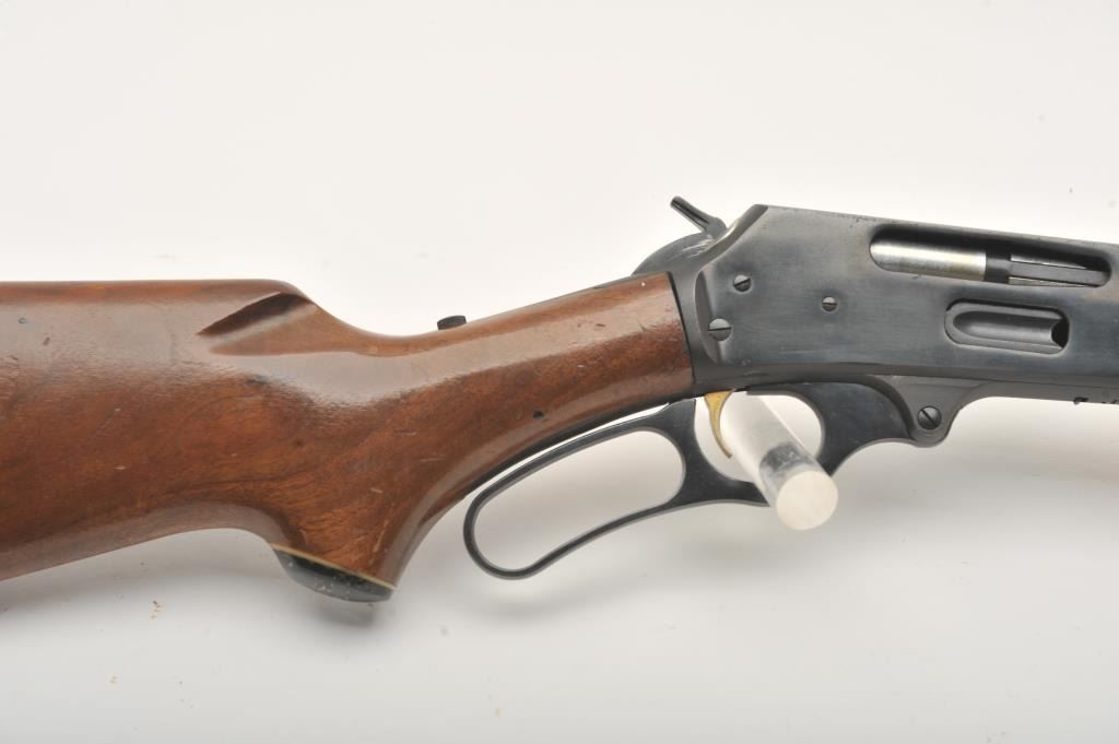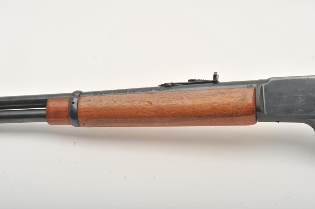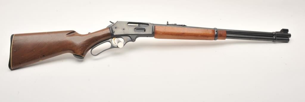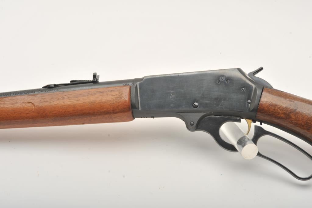 Marlin Model 336 lever action carbine, .30-30 Win. caliber, 20” barrel, blued finish, wood stocks, S/N 21055668; overall very good to fine condition displaying majority of original blued finish, near fine bore, crisp action, sharp markings and very good wood showing some scattered mars and scratches from handling and storage. (Modern/PPT). Est.: $175-$350.