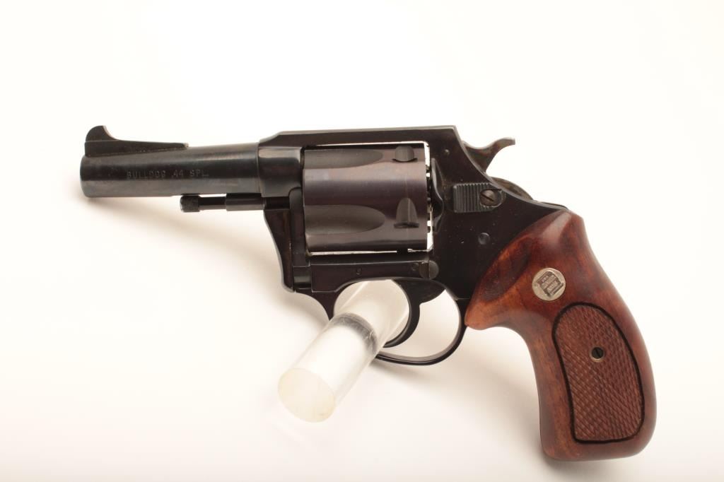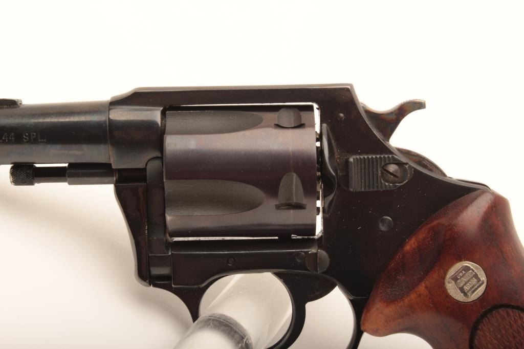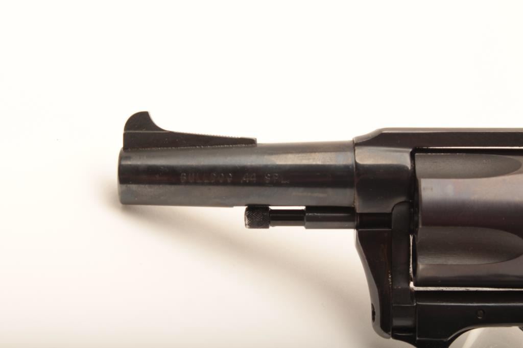 Charter Arms Bulldog Model DA revolver, .44 Special caliber, 3” barrel, blued finish, checkered wood medallion grips, S/N 332571; overall fine condition with a fine bore, majority of original blued finish remaining, crisp action and markings, fine grips. (Modern/PPT). Est.: $150-$300.