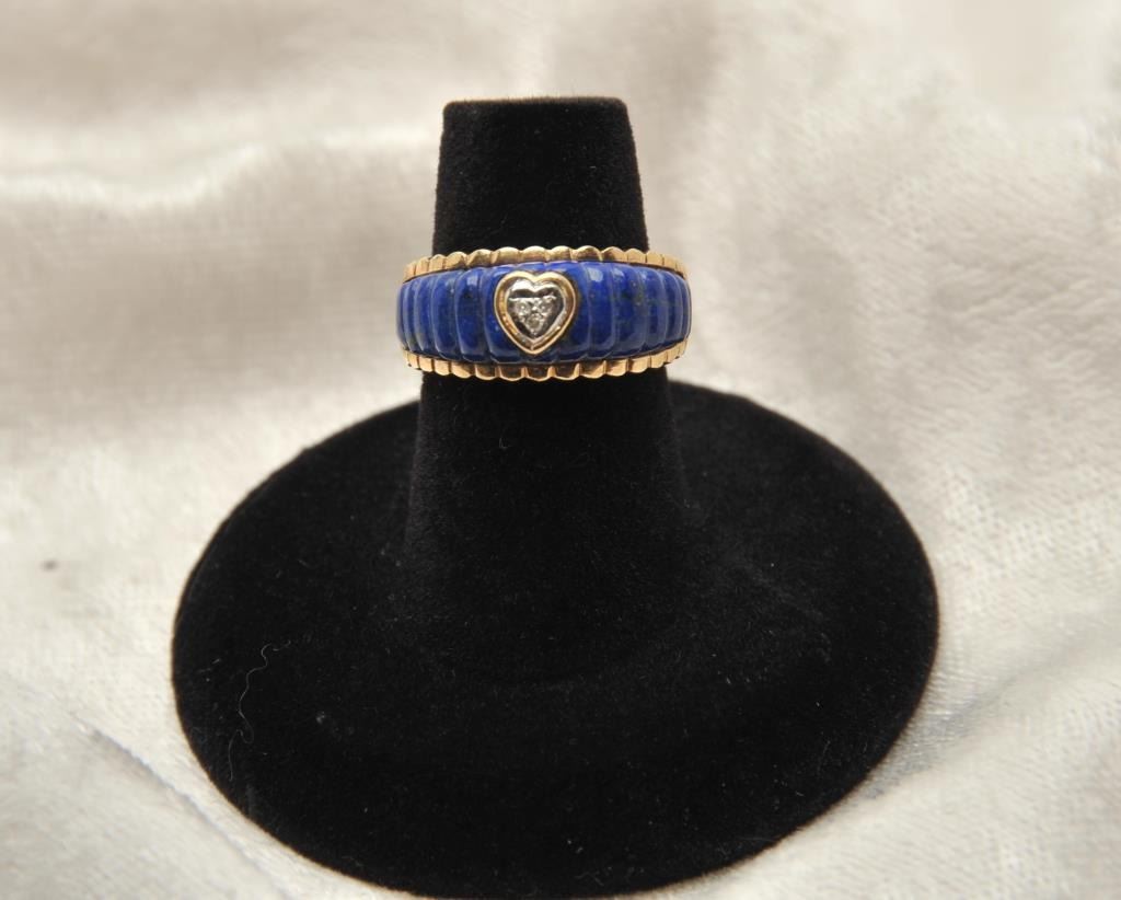 One 14k yellow gold ring inlay-ed with ribbed lapislazuli with a heart shaped frame set with diamonds Est:$325-650
