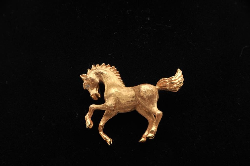 One beautifully crafted horse brooch made in 14k yellow gold weighing 16.91gms. Est:$500-1000