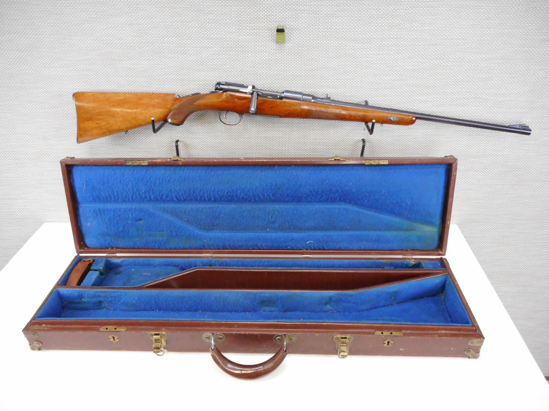 MANNLICHER SCHOENAUER , MODEL: 1903 TAKE DOWN , CALIBER: 6.5 X 54 MS , BORE IS GOOD, BLADE FRONT AND EXPRESS REAR SIGHTS, BUTTER KNIFE BOLT HANDLE, CHECKERED FOREND AND CAPPED PISTOL GRIP BUTT STOCK, STEEL BUTT PLATE, SHOWS VERY LITTLE HANDLING MARKS, SLING SWIVEL STUDS , STOCK # 9979 , SERIAL # 17808 , ACTION: BOLT ACTION RIFLE , BARREL LENGTH: 23" , CONDITION: 7/10 , CLASS: CLASS: CANADIAN NON RESTRICTED CLASS