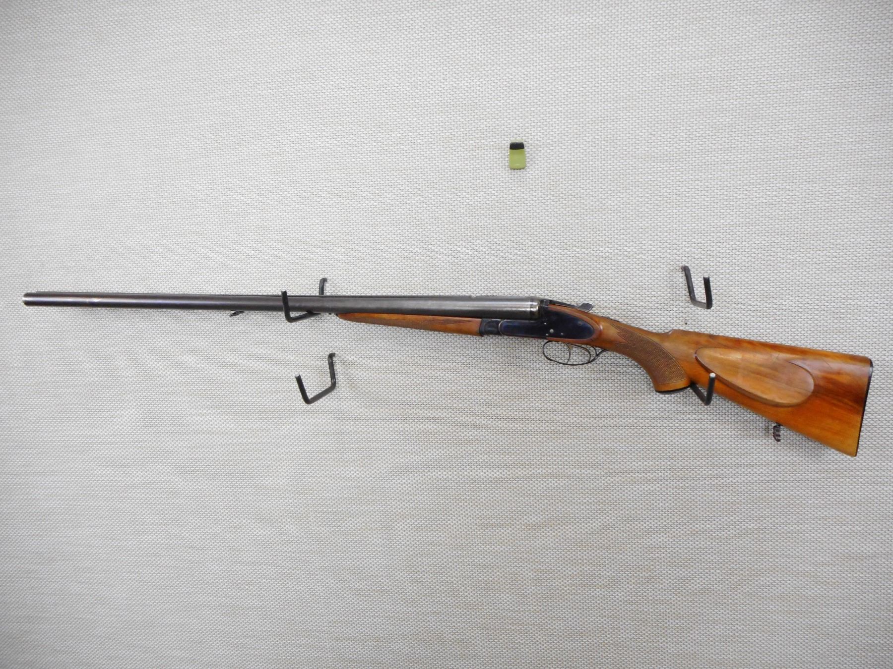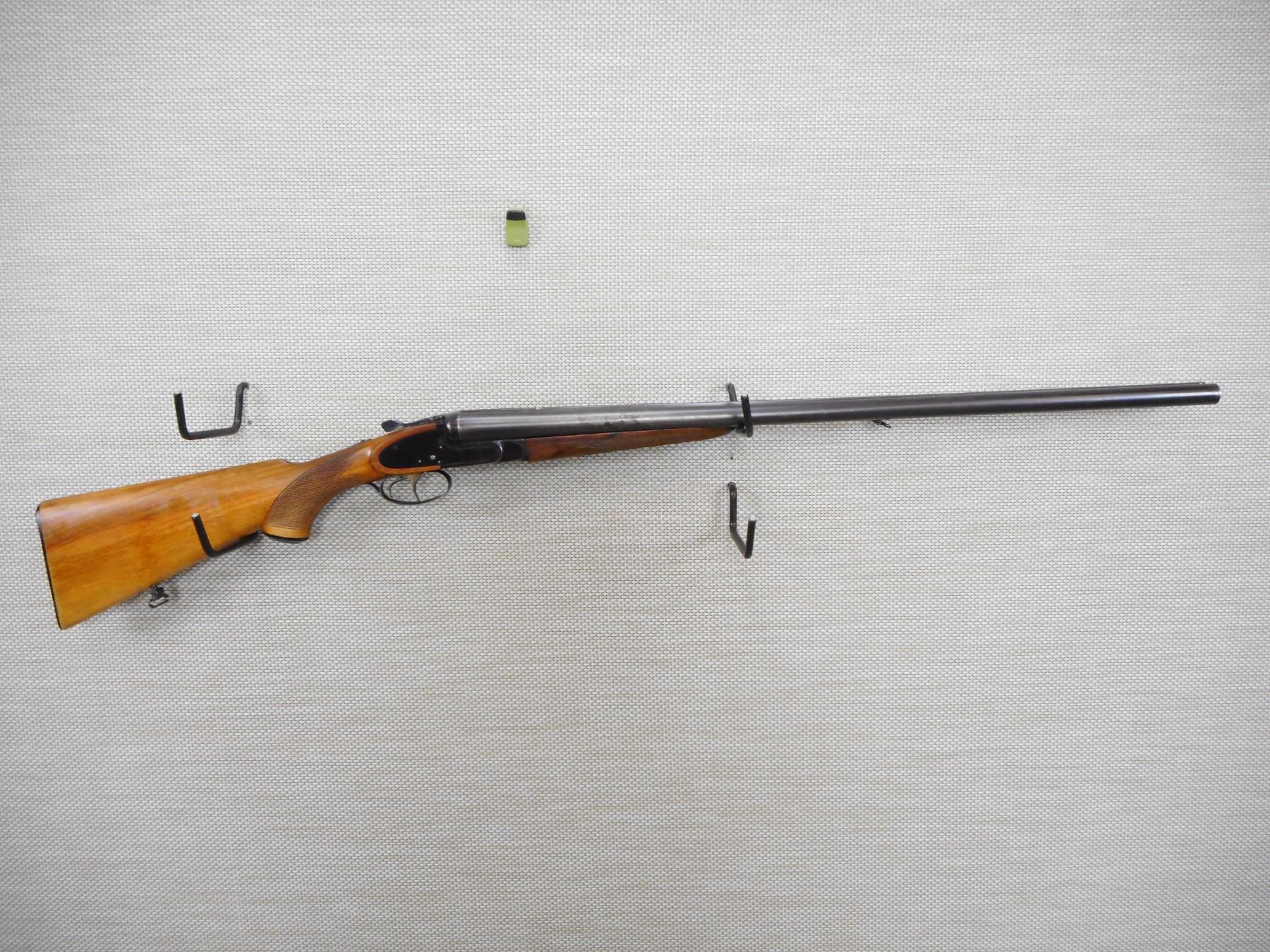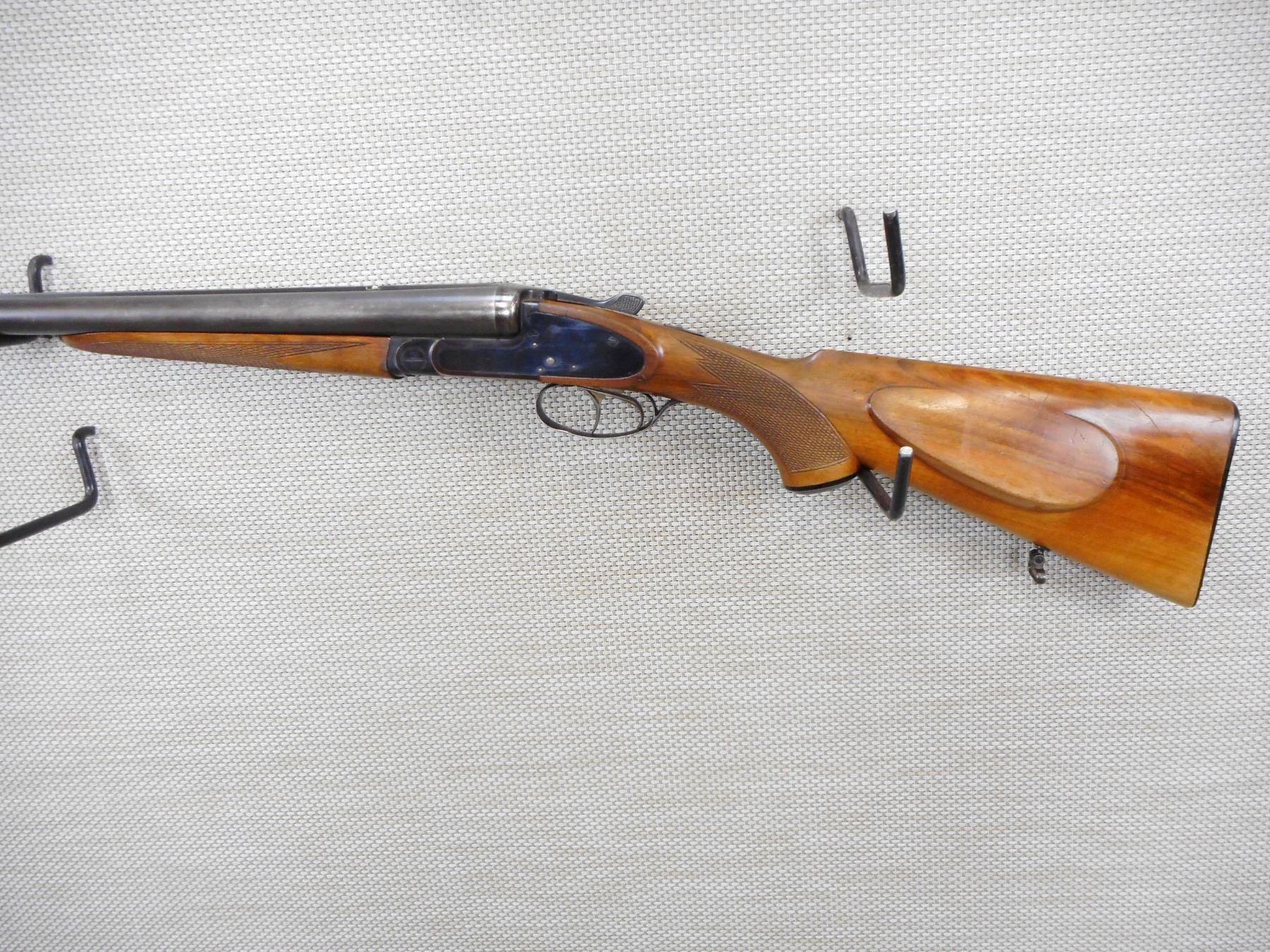 BRNO , MODEL: SIDE BY SIDE , CALIBER: 12GA X 3" , FIXED FULL AND MODIFIED CHOKES, VERY GOOD BORES, 13 3/4" LOP, CHECKERED FOREND AND CAPPED PISTOL GRIP BUTT STOCK WITH RAISED CHEEK PIECE, SLING SWIVEL LOOPS, PLASTIC BUTT PLATE, DOVETAILED FOR A REAR SIGHT THAT IS NOT PRESENT, SHOWS SOME HANDLING MARKS , STOCK # 10044 , SERIAL # 2346058 , ACTION: SIDE BY SIDE BREAK ACTION SHOTGUN , BARREL LENGTH: 28" , CONDITION: 6/10 , CLASS: CLASS: CANADIAN NON RESTRICTED CLASS
