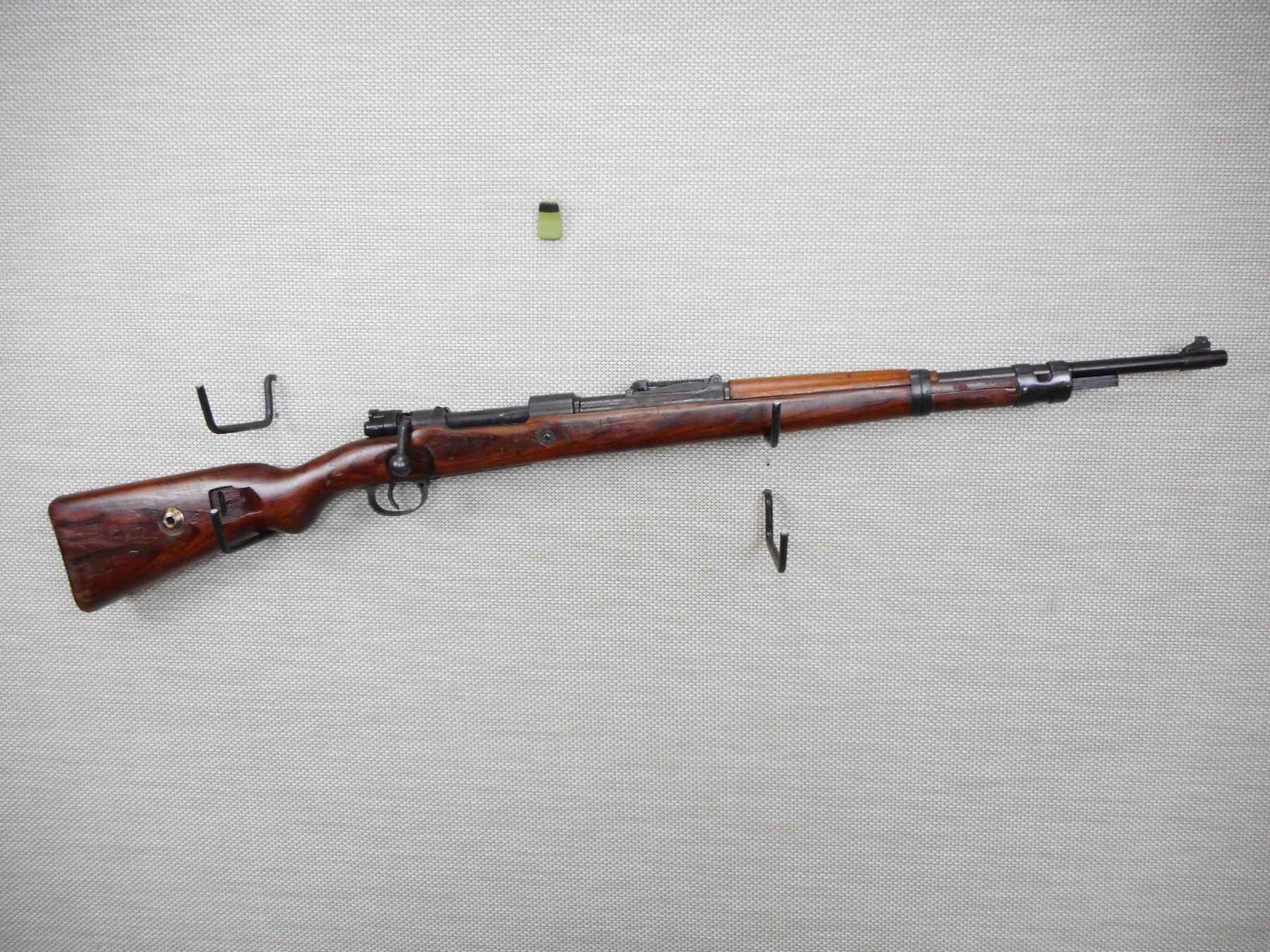 WWII ERA, MAUSER , MODEL: K98 , CALIBER: 8MM MAUSER , BOLT AND RECEIVER ARE MATCHING BY SERIAL # , DATED 1943 GERMAN MANUFACTURE, HAS NUMEROUS GERMAN WAFFENAMPS, APPEARS TO BE A RUSSIAN REWORK, VERY GOOD BORE, RETAINS FULL MILITARY CONFIGURATION, BLADE FRONT AND ADJUSTABLE MILITARY SIGHTS, TWO PIECE HARDWOOD STOCK WITH SLING SWIVEL LOOPS AND STEEL BUTT PLATE, SHOWS SOME HANDLING MARKS , STOCK # 10189 , SERIAL # 1178 , ACTION: BOLT ACTION RIFLE , BARREL LENGTH: 25" , CONDITION: 6/10 , CLASS: CLASS: CANADIAN NON RESTRICTED CLASS