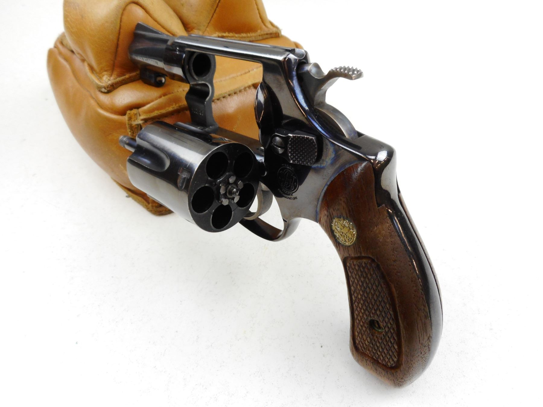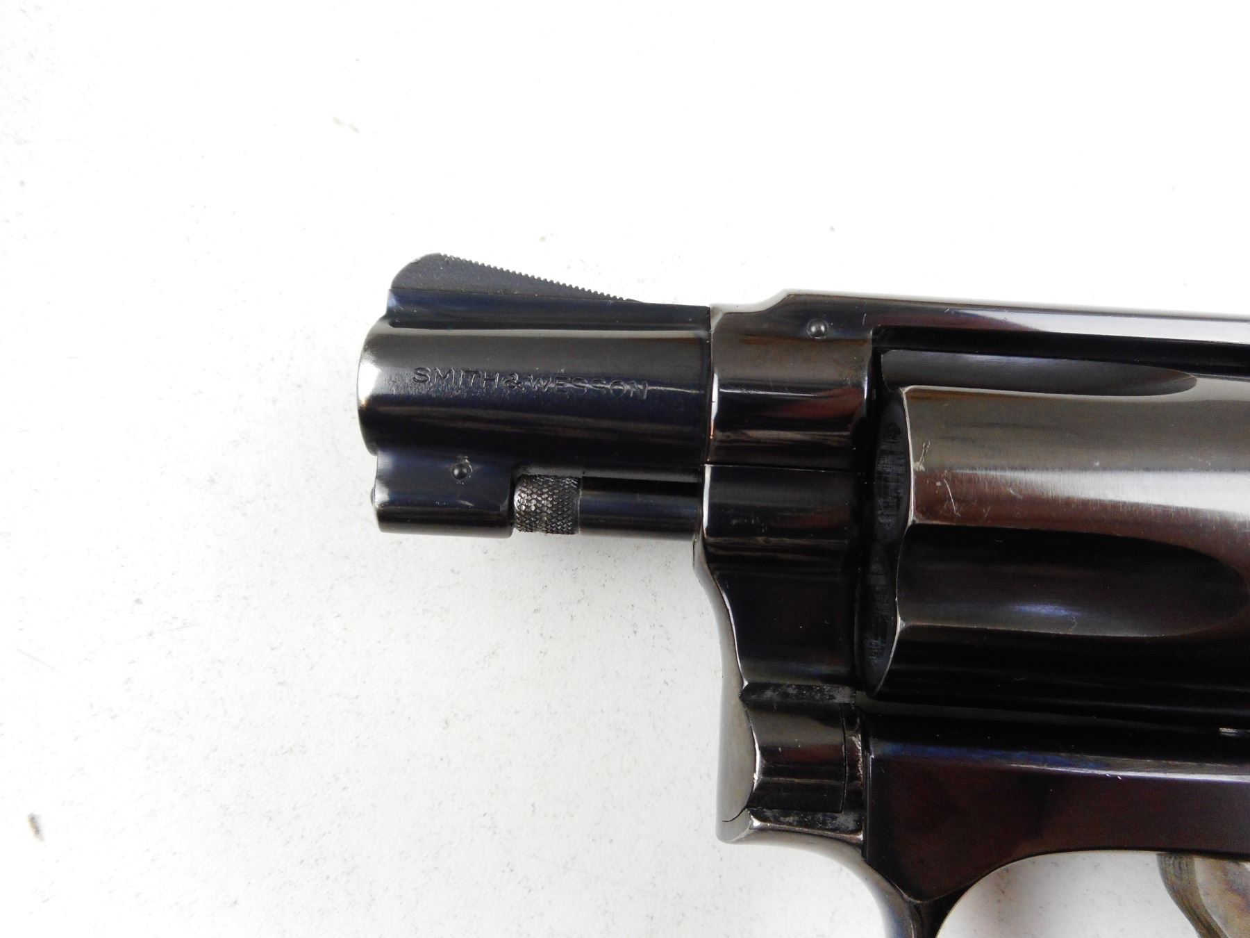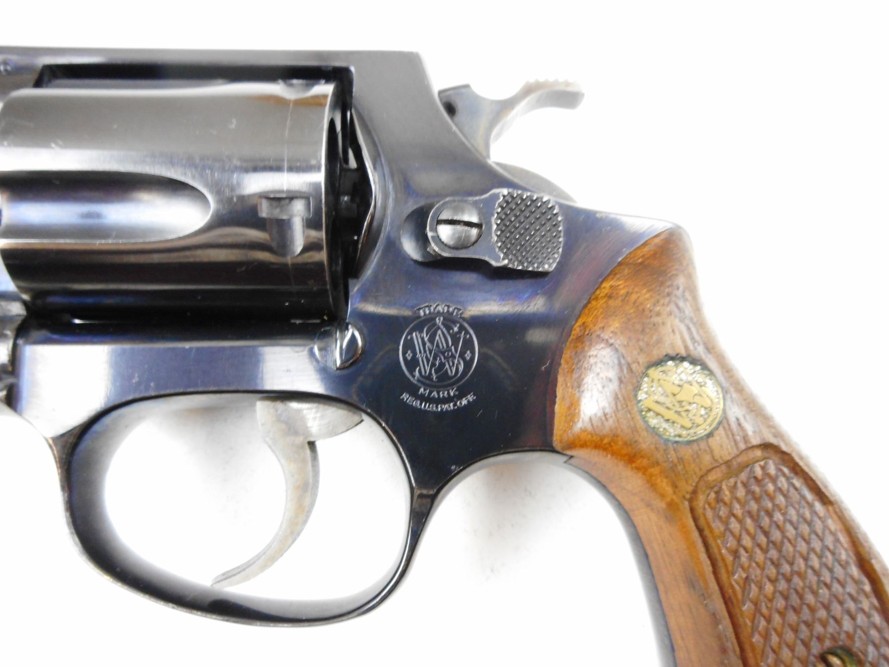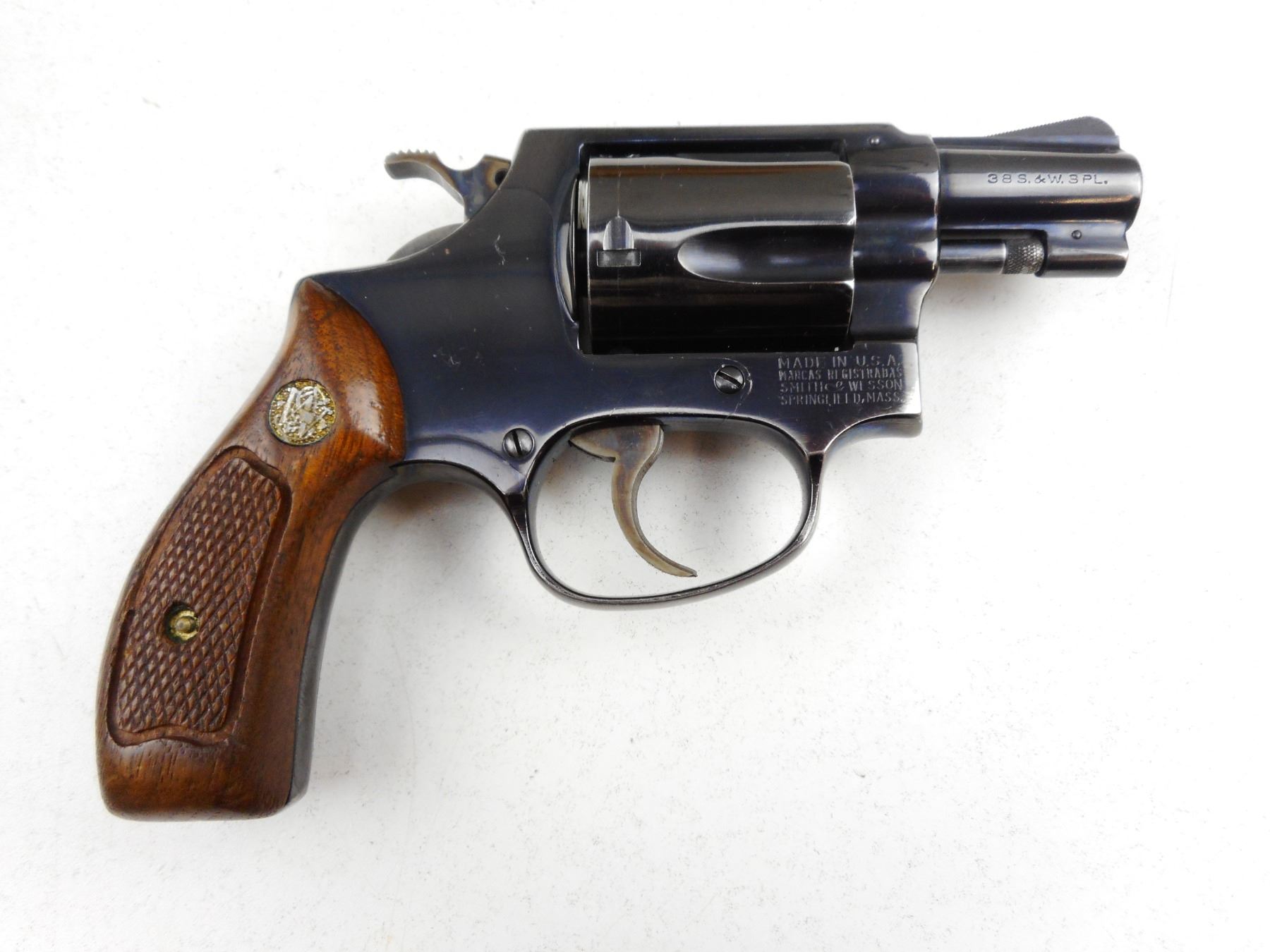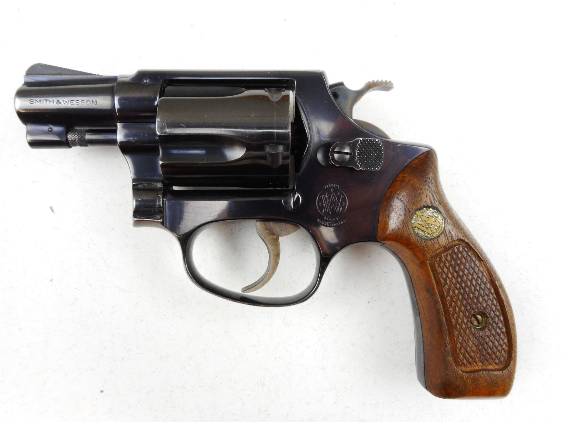 SMITH & WESSON , MODEL: 36 , CALIBER: 38 SPL , BLUE FINISH, CHECKERED WOODEN GRIPS, NOTCH & BLADE SIGHTS, EXCELLENT BORE, MINOR HANDLING MARKS , ACTION: REVOLVER , BARREL LENGTH: 51MM , CONDITION: 8/10 , STOCK# 2522 , SERIAL # 5J4343 , CLASS: CANADIAN PROHIBITED CLASS