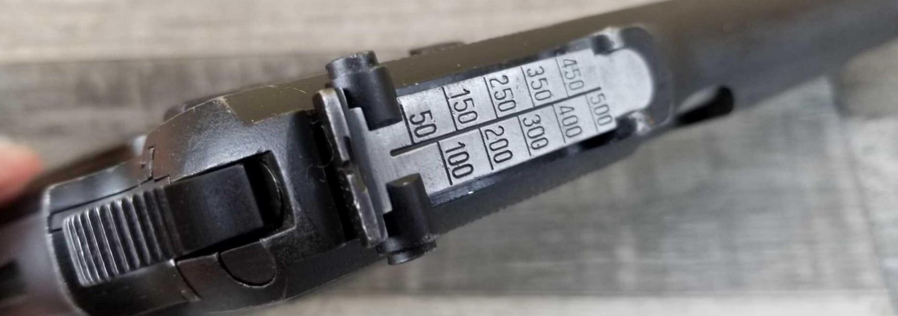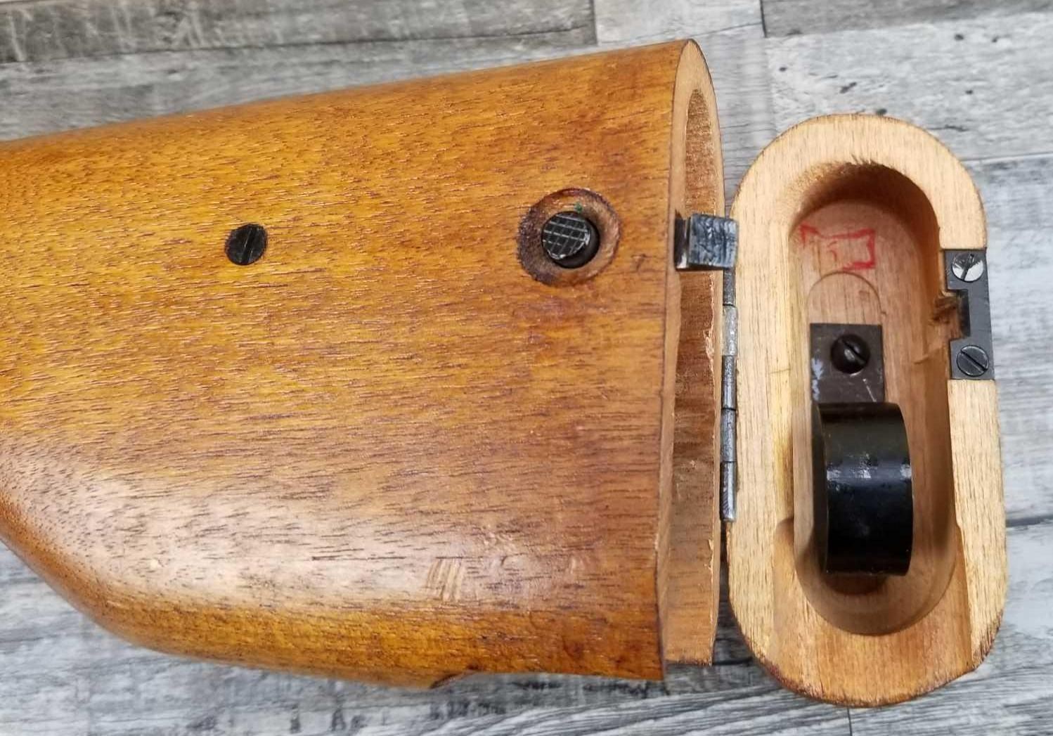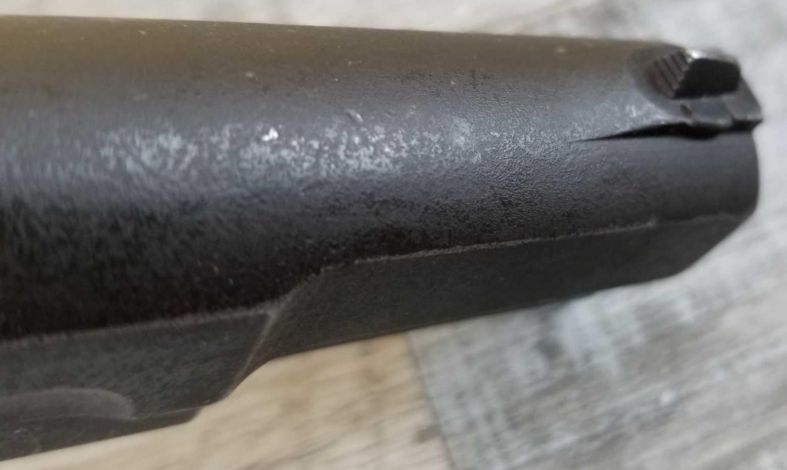 TANGENT REAR SIGHT. COMES WITH STOCK/HOLSTER. WAR TIME FINISH. MATCHING NUMBERED. BORE IS VERY GOOD. GOOD WORKING ORDER. COMES WITH TWO HI-CAP MAGS, IN CA NO MAG.