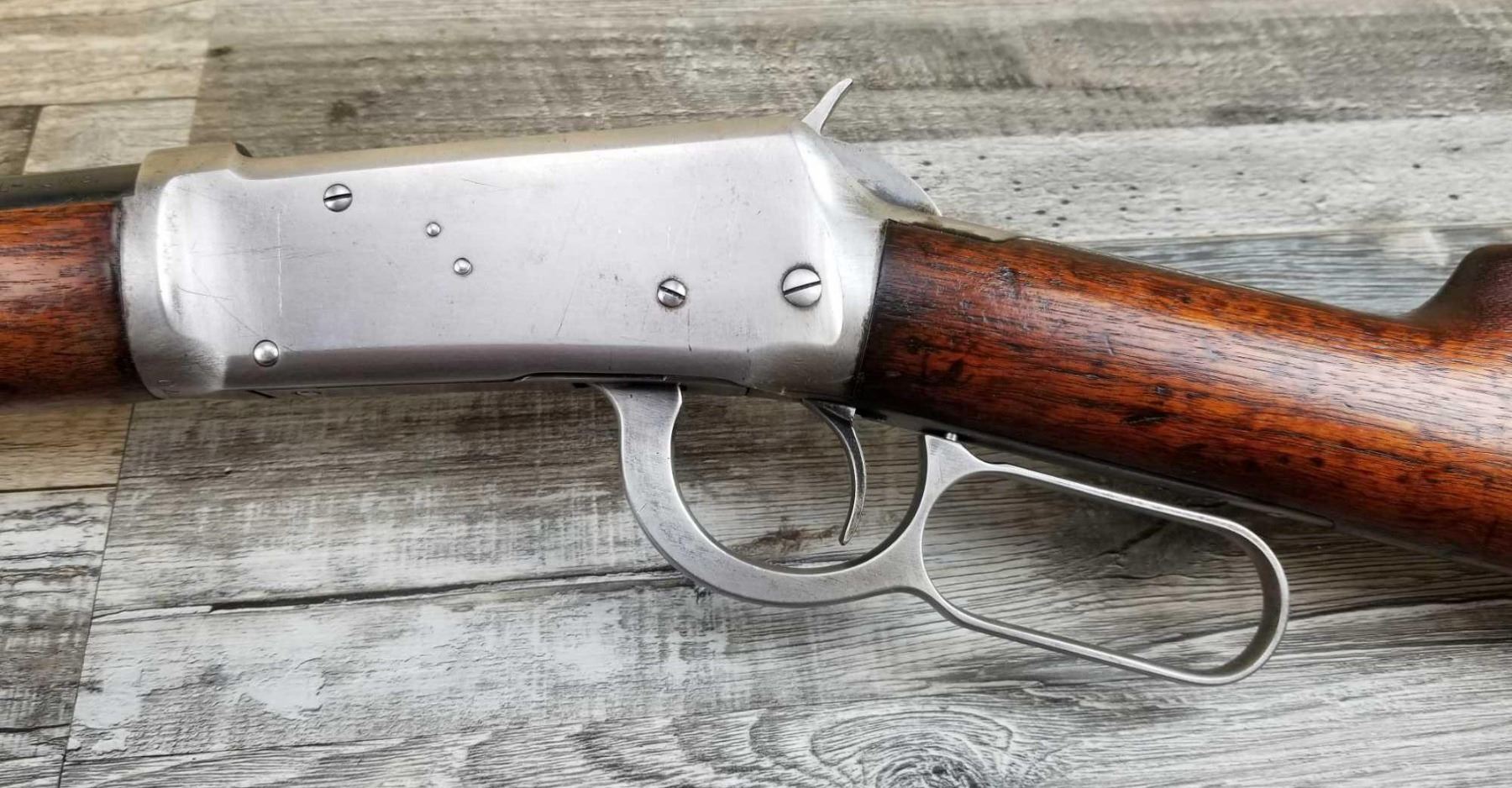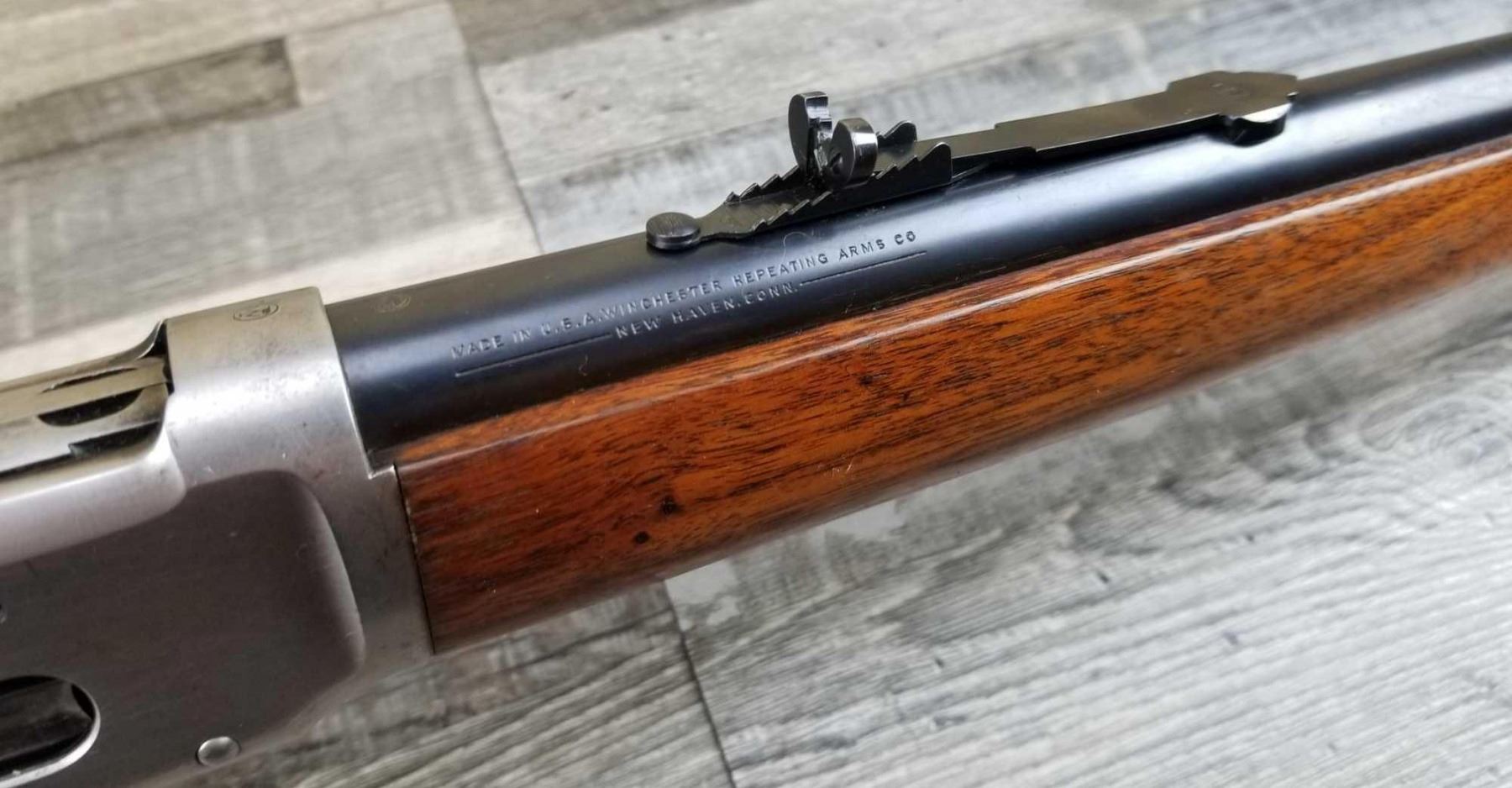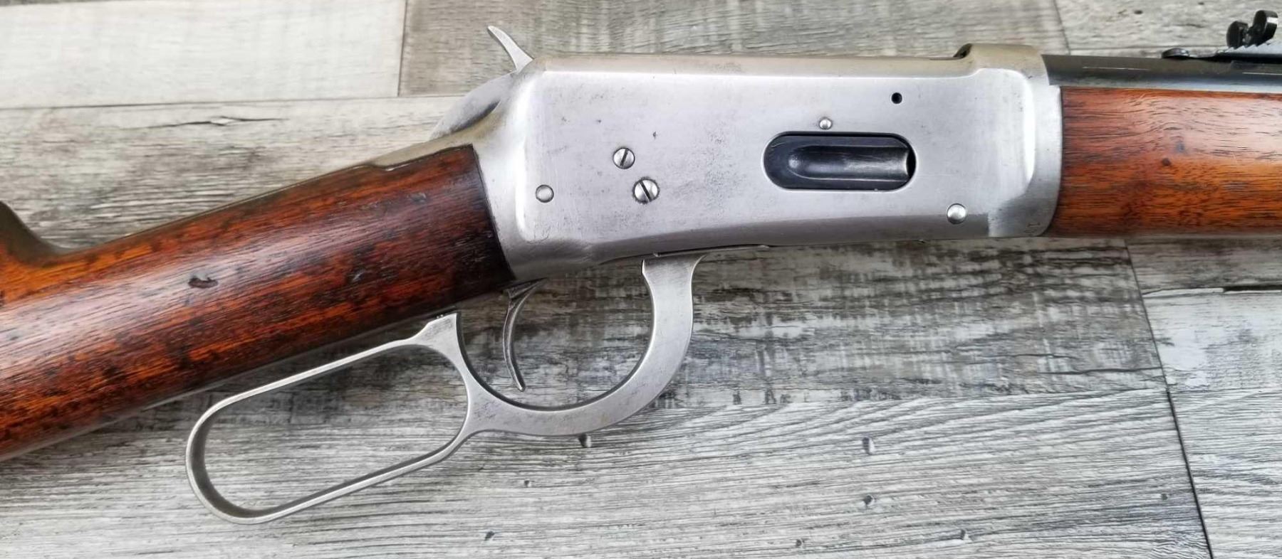 NO FINISH REMAINS ON RECEIVER OR LEVER. 60% ON BARREL AND MAG TUBE. APPEARS TO FUNCTION WELL. BRIGHT BORE.
