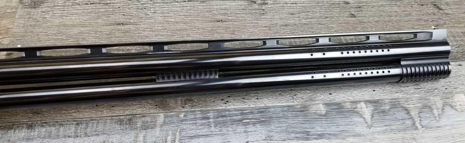 COMES WITH EXTRA SINGLE BARREL, 34in. ALL BARRELS PORTED WITH MINT BORES. HIGH VENT RIB.