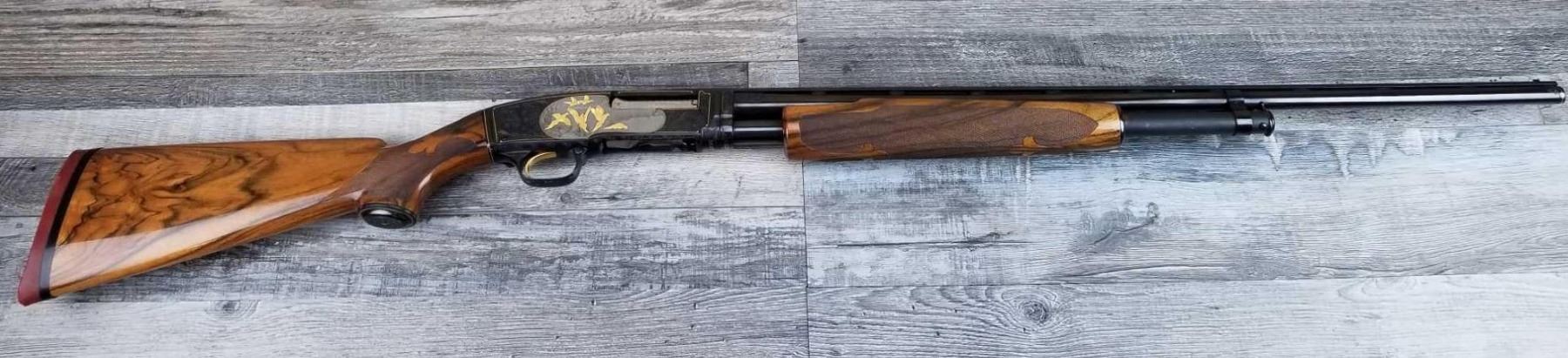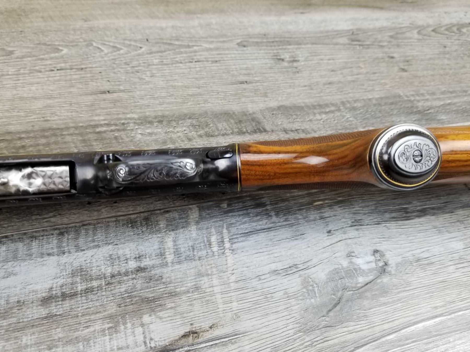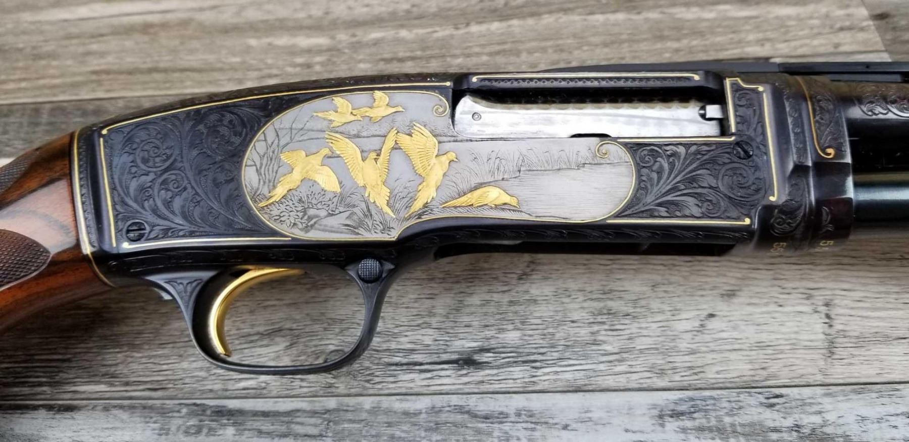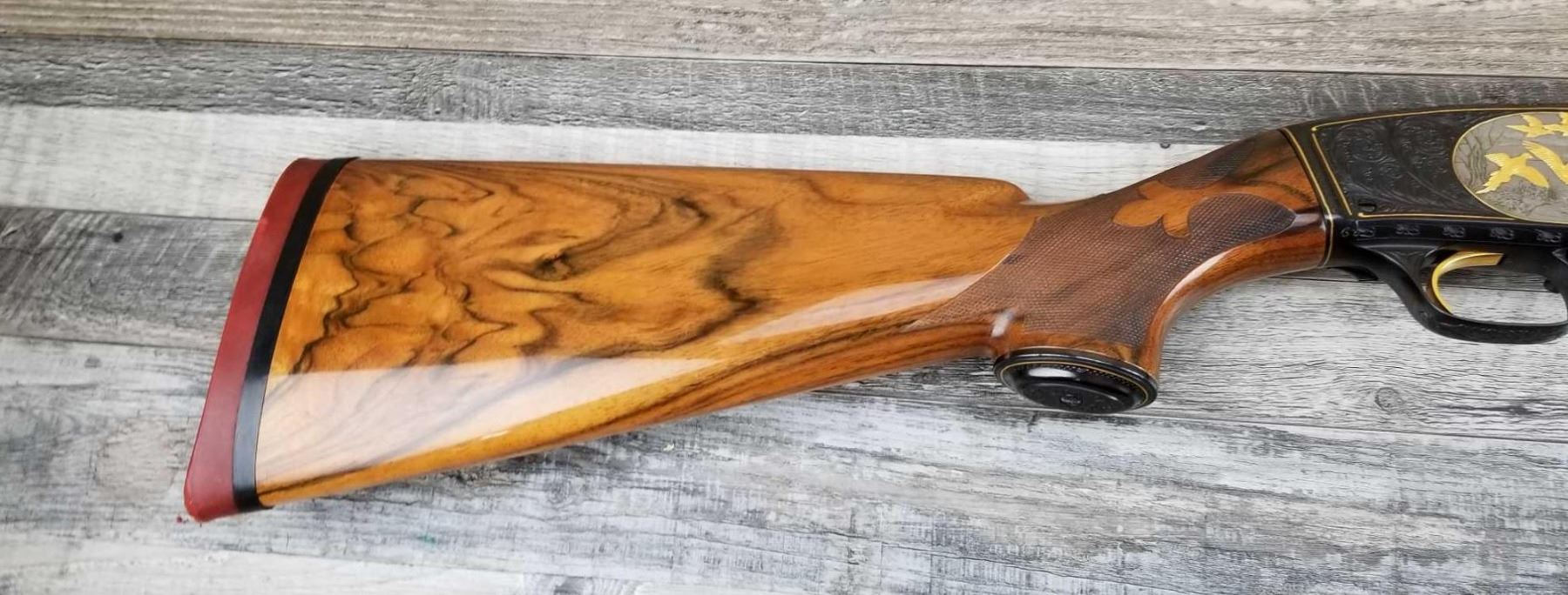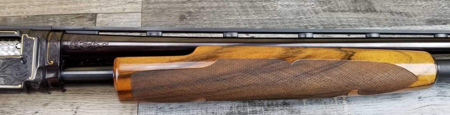 FULLY ENGRAVED AND SIGNED BY ANGELO BEE. TOTAL OF THIRTEEN BIRDS. EXTRA FANCY WOOD. MADE IN 1946. 3in CHAMBER. BRIGHT BORE. MUSEUM QUALITY, FACTORY VENT RIB.