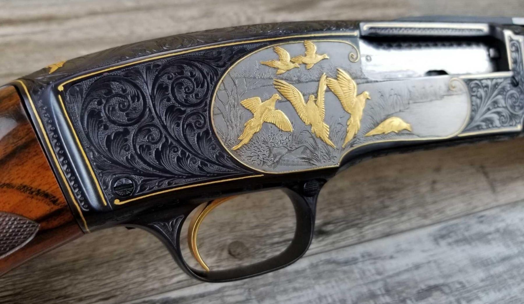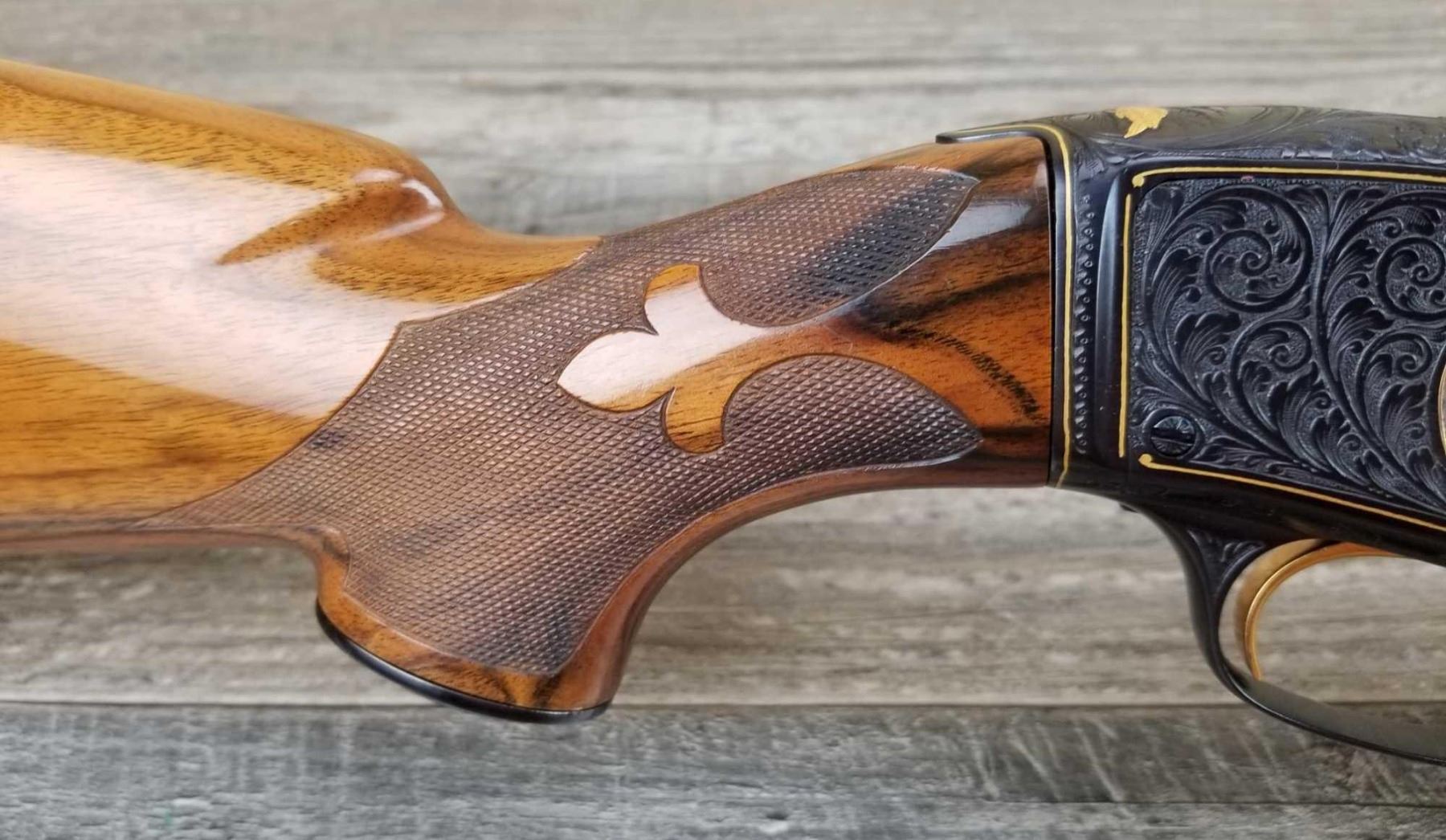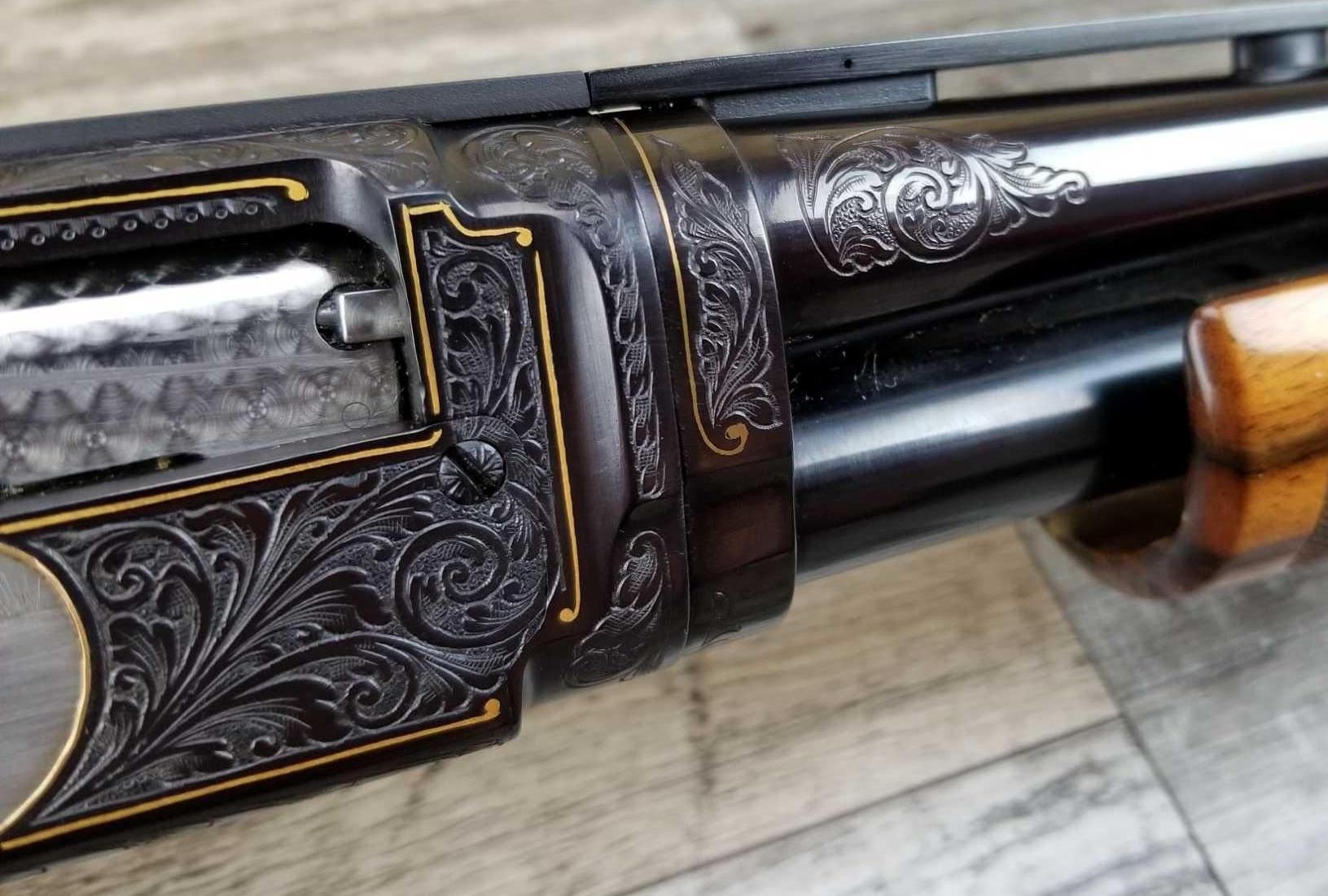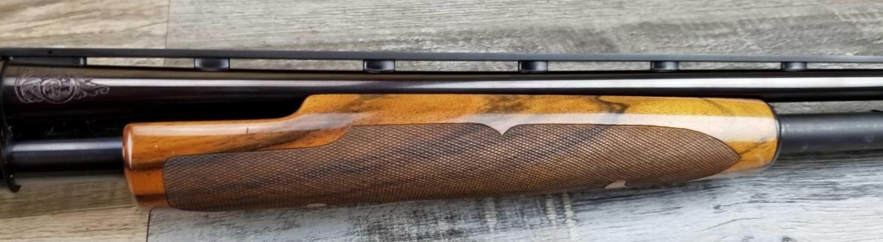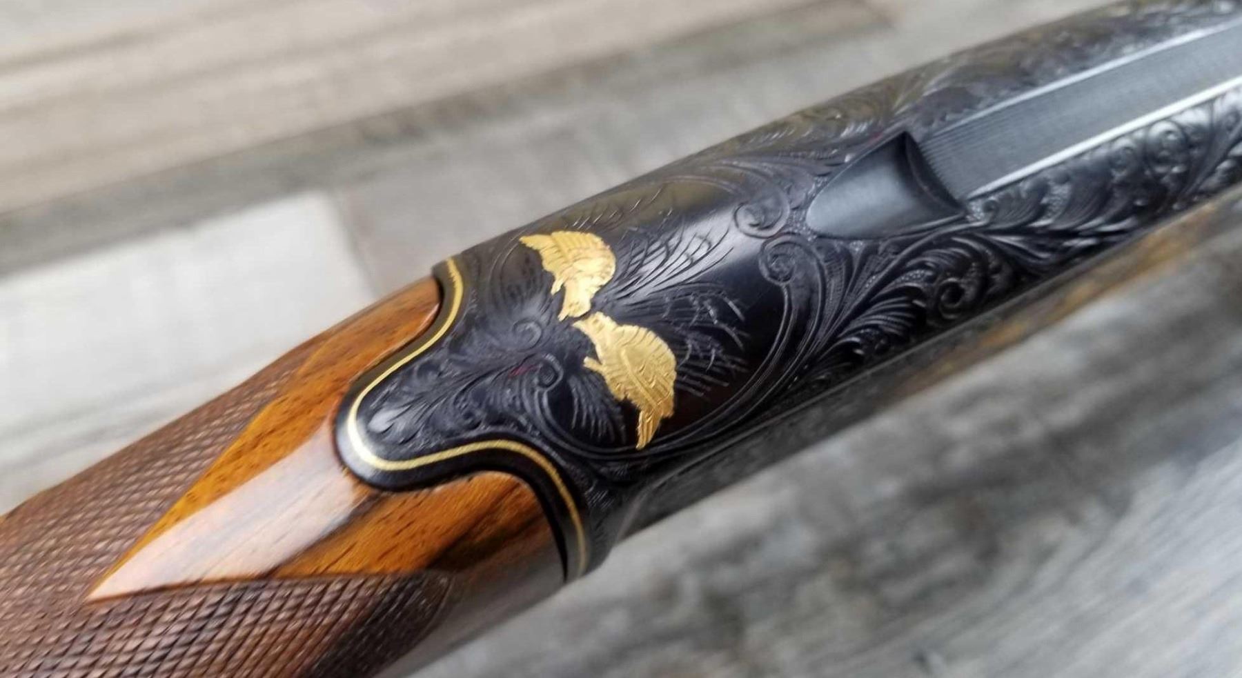 FULLY ENGRAVED AND SIGNED BY ANGELO BEE. TOTAL OF THIRTEEN BIRDS. EXTRA FANCY WOOD. MADE IN 1946. 3in CHAMBER. BRIGHT BORE. MUSEUM QUALITY, FACTORY VENT RIB.