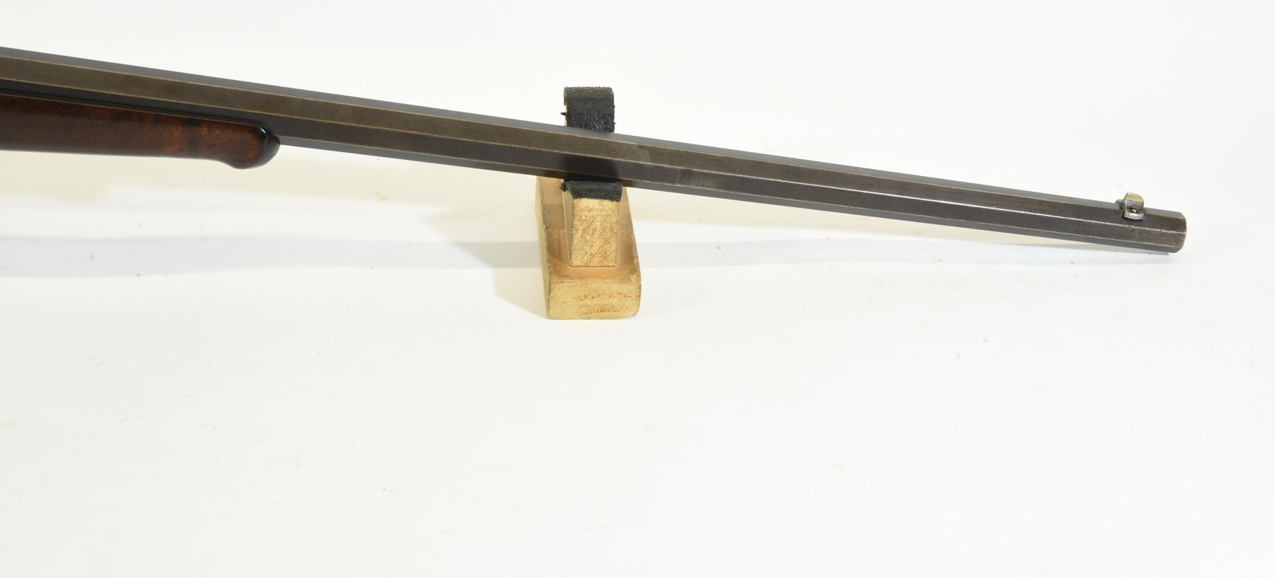 Non-restricted, lever action, 38-72 WCF, 26" octagonal barrel, SN 52849. Wood has a few dents, bluing is brown, bore is pitted, rifling prominent.