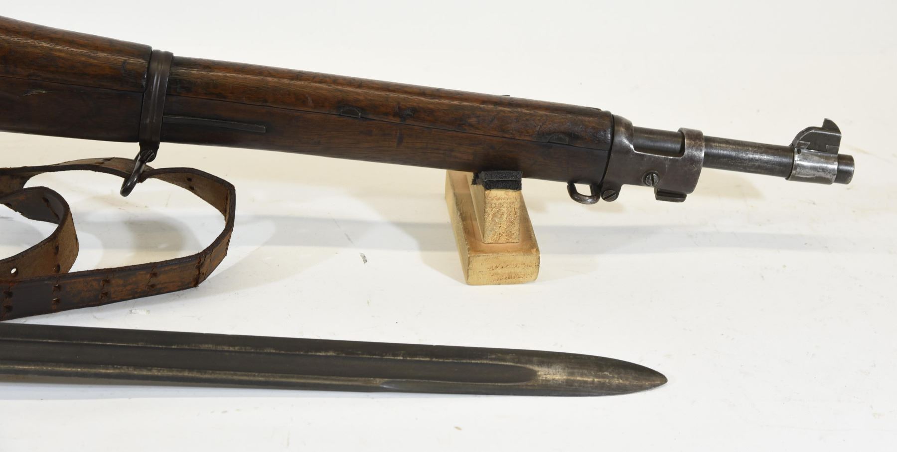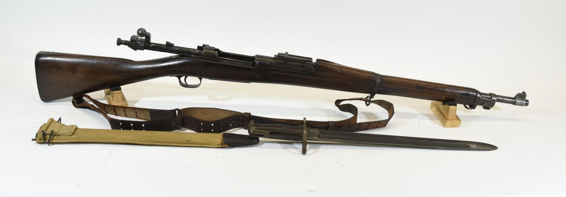 Non restricted, bolt action, cal. 30-06 sprg., 24" barrel, SN 1447342, wood has a few light dents and handling marks, bluing is turning grey, bore is dark rifling is evident, comes with a bayonet, scabbard and sling
