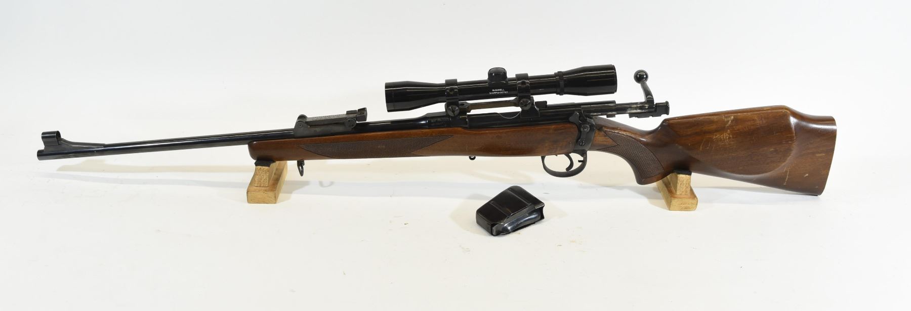 Non restricted, bolt action, .303 British, 22" barrel, SN Z83903, wood has some marks and no butt plate, bluing has been redone and has a few light scratches, bore is good, comes with a Bushnell Sharpshooter 4 x 32 scope