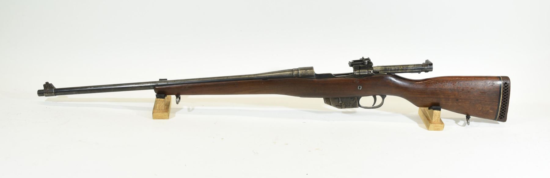 Non-restricted, bolt action, 303 British, 25" barrel, SN none. Wood cracked at magwell with scratches and marks, bluing turning brown, bore good.
