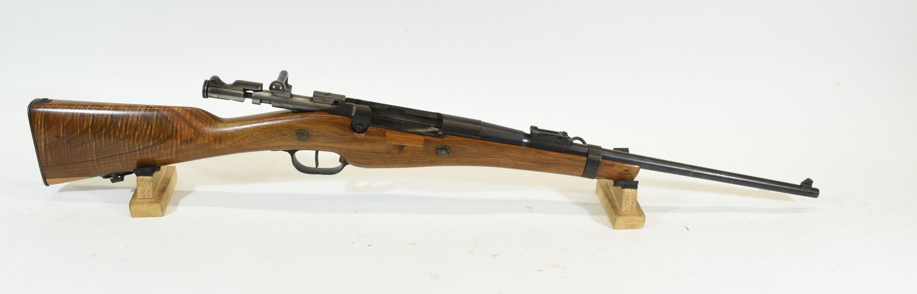 Non restricted, bolt action, 8 x 50r lebel, 18" barrel, SN 7097, wood is good but has had 3 good repairs, has 2 fine cracks in the butt stock and the foreend has been cut down, bluing is good, bore is a little dark rifling prominent,this is a FRENCH, WW I MANNLICHER BERTHIER CARBINE, Receiver is marked Mle 1907-15 Ett CONTINSOUZA, all matching numbers but no number on the stock