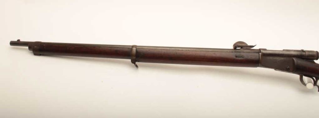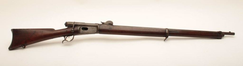 Vetterli Model 78 bolt action rifle, 11mm caliber, 33” barrel, brown patina, wood stocks, S/N 165057; overall good condition displaying a grey/brown patina to metal surfaces, bore is overall good, crisp action, good markings, and overall good wood; missing cleaning rod. (Antique). Est.: $250-$500.