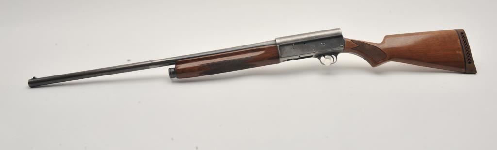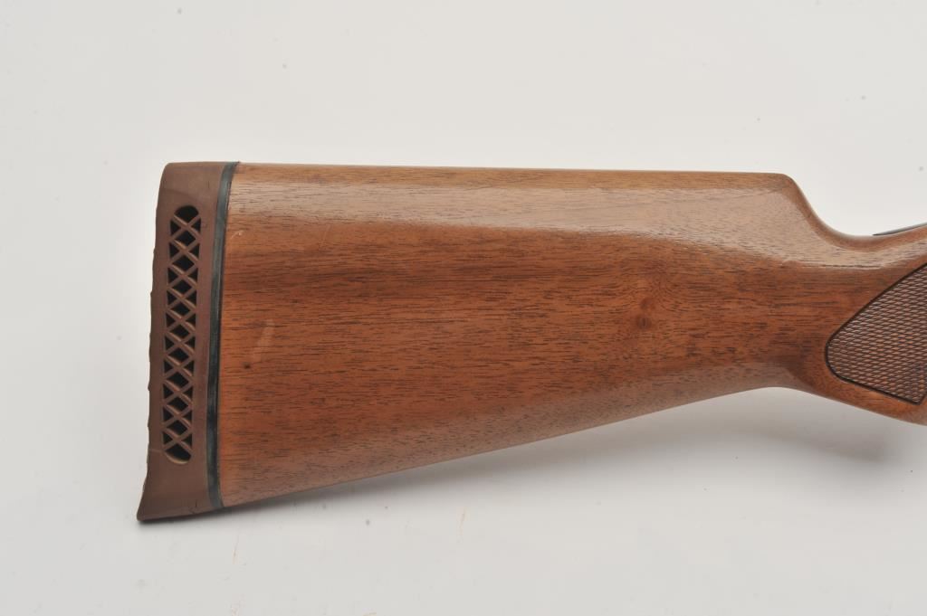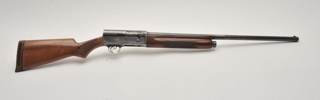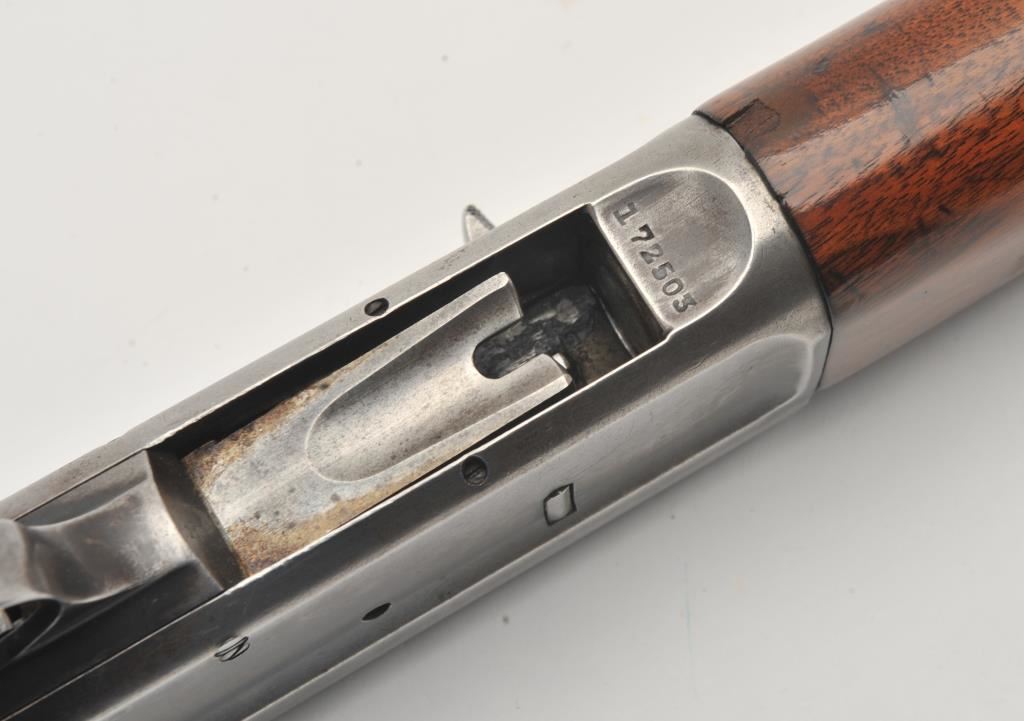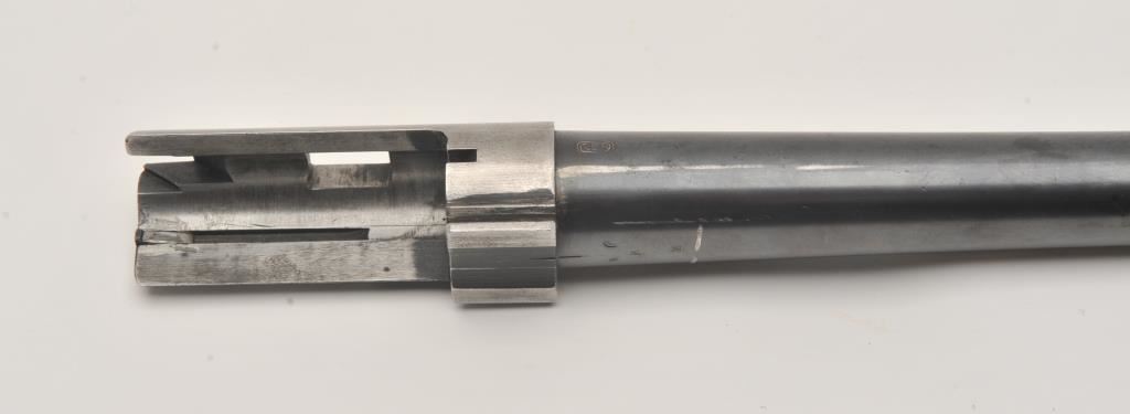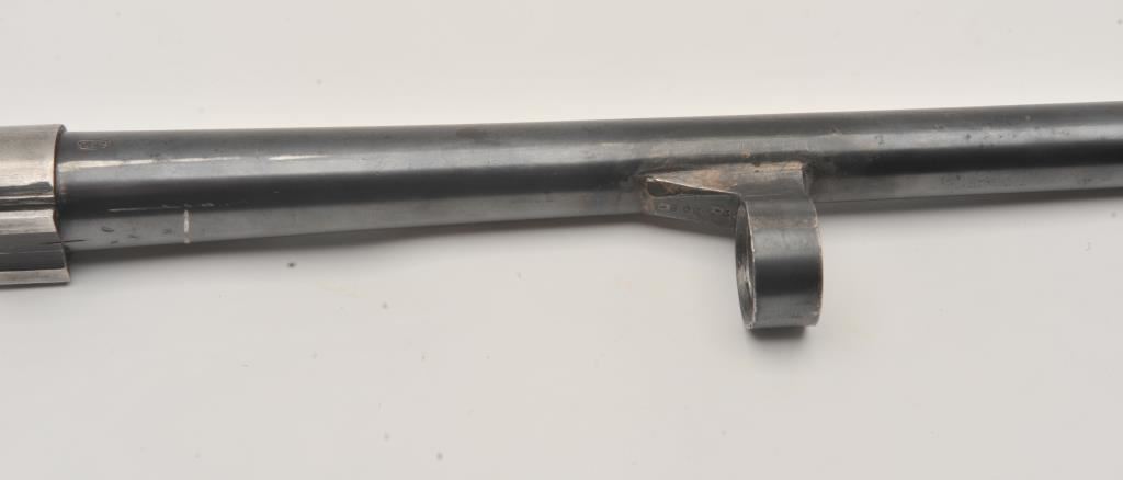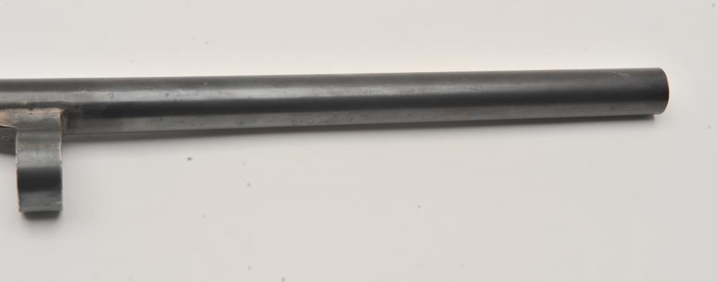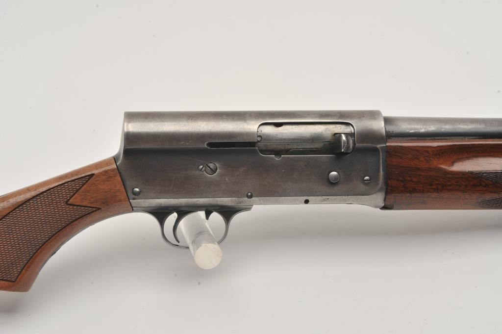 Remington Model 11 semi-automatic shotgun, 12 gauge, Serial #172503. The shotgun is in good overall condition with a 28” barrel with a steel bead front sight. The metal surfaces are a mix of thinning blue and grey patina. The checkered wood stocks are in good condition with a replacement butt stock. The butt ends with a ventilated rubber pad providing a 15” LOP. The bore is fair, the action functions and markings are crisp. The lot includes an additional 18” barrel in good overall condition. Est.: $150-$300. (C+R).