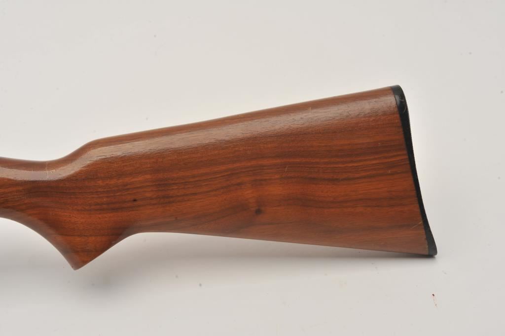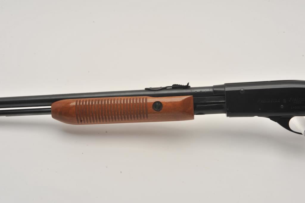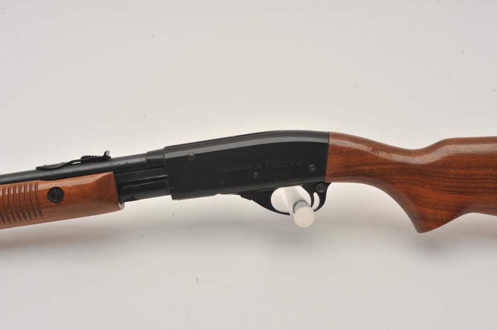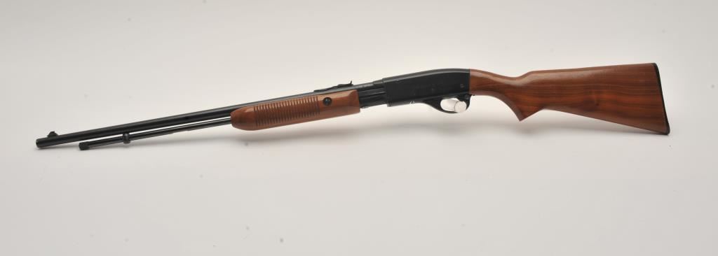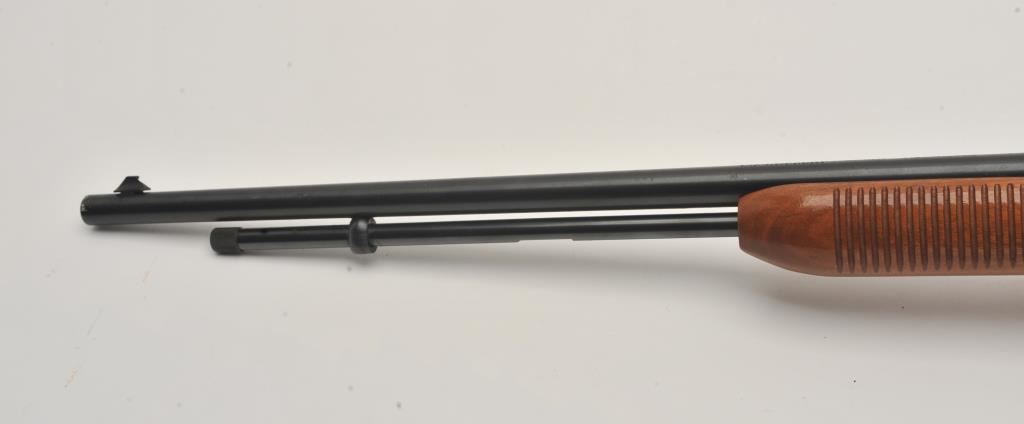 Remington Field Master Model 572 pump rifle, .22 Short, Long or Long Rifle caliber, Serial #1423165. The rifle is in fine overall condition overall condition with a 23” barrel. The metal surfaces retain nearly all of their blue finish with wear at the muzzle and areas of light surface erosion along the barrel. The smooth wood stock is in very good condition with light handling marks. The butt stock ends with Remington marked checkered plastic butt plate. The bore is good, the action crisp and markings are sharp. Est.: $100-$200. (Modern).