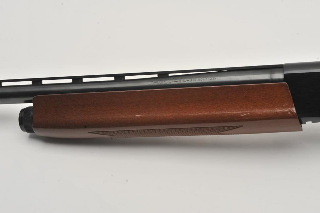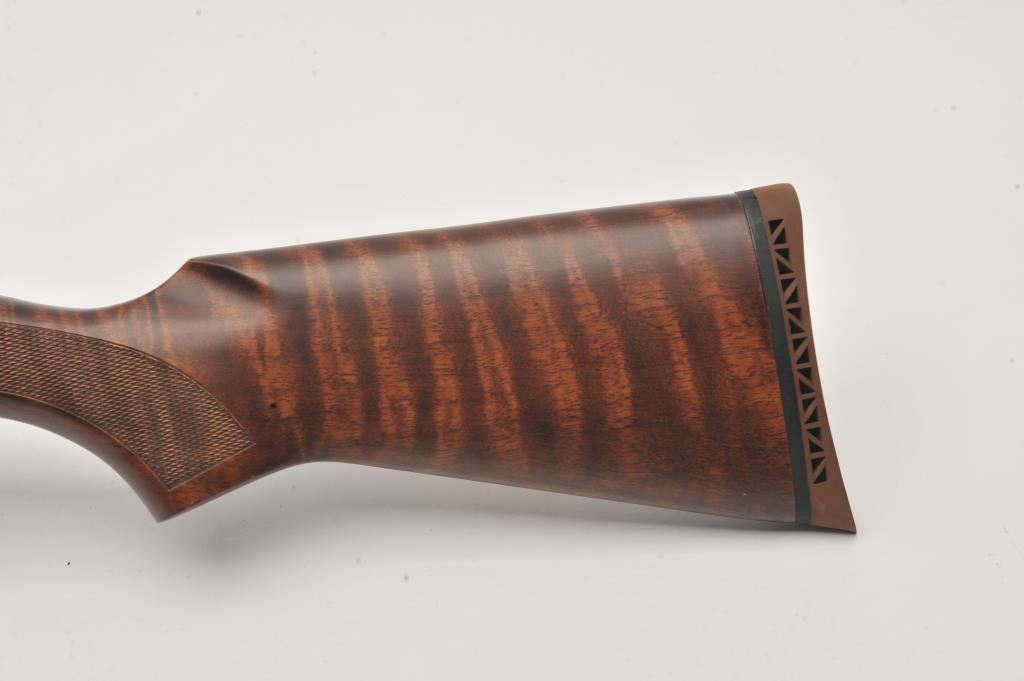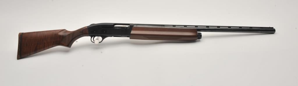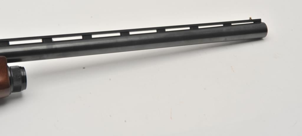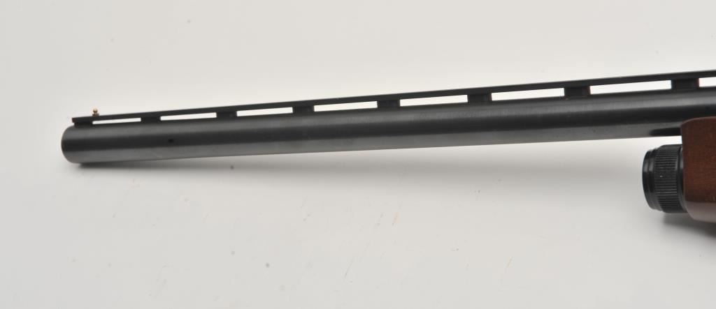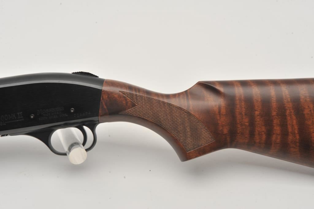Mossberg Model 5500 MK II semi-automatic shotgun, 12 gauge, Serial #024474. The shotgun is in very good overall condition with a 26” barrel with a full-length ventilated rib and brass bead front sight. The metal surfaces retain nearly all of their blue finish with light wear at the muzzle and edge wear on the receiver. The checkered wood stocks are in very good condition with nice figure in the butt stock. The butt stock has been shortened and a ventilated rubber recoil pad added providing a 13 ¼” LOP. The bore is good, the action is crisp and markings are sharp on this lightly used Mossberg. The lot includes an additional 24” barrel finished in camouflage with a full-length ventilated rib. Est.: $200-$400. (Modern).