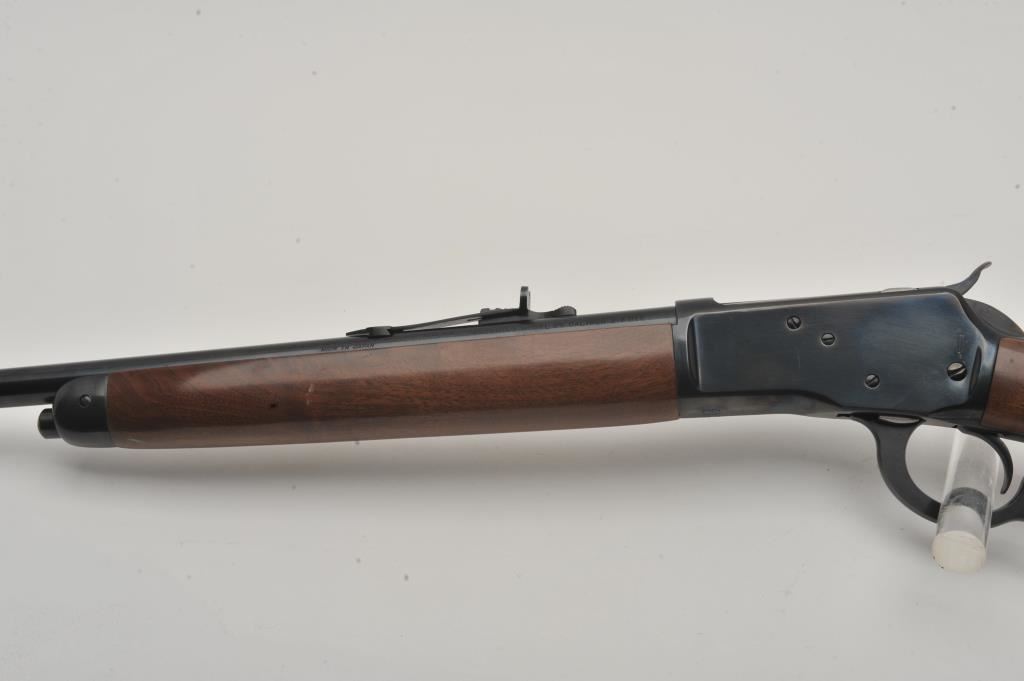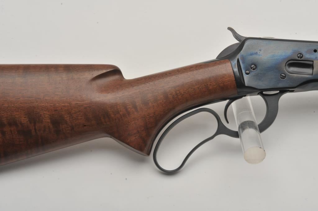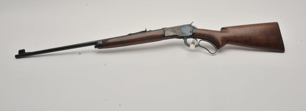 Browning Model 65 lever action rifle, .218 Bee caliber, Serial #00547PN167. The rifle is in fine overall condition with a 24” barrel with a hooded blade front and standard rear sights. The barrel and button magazine retain nearly all of their blue finish with light wear at the muzzle. The receiver shows small scratches at the rear but otherwise retains a significant amount of blue finish. The smooth wood stocks are in very good condition with small mars and compressions. The butt stock ends with a checkered steel butt plate. The bore is good, the action is crisp and markings are sharp on this lightly used Browning. Est.: $600-$1,200. (Modern).