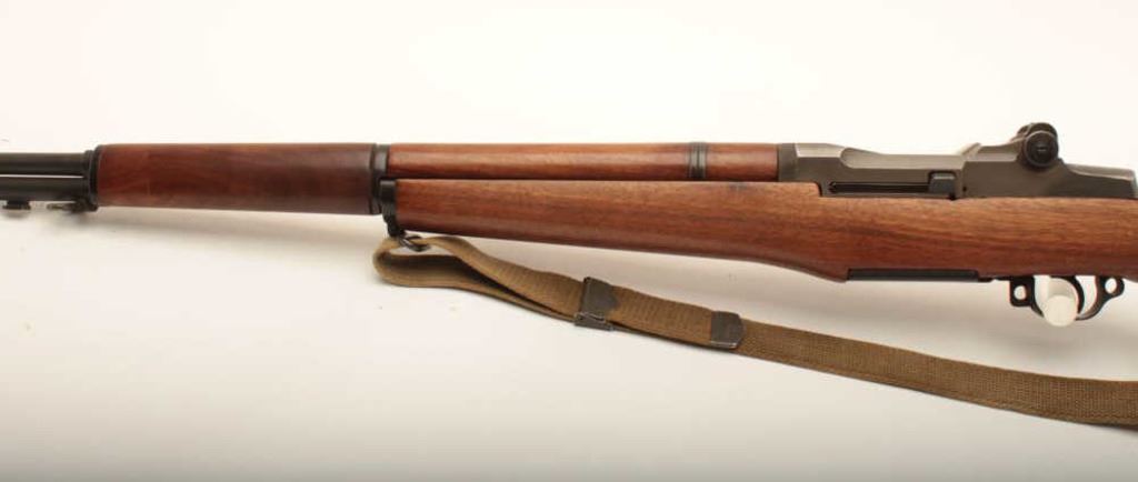 U.S. Springfield Armory M1 Garand semi-automatic rifle, .30 caliber, 23.5” S.A. barrel dated 6-45, cut, re-weld and reworked, military finish, wood stock marked “B 100” on bottom of semi-pistol grip (no other proofs or cartouches visible, S/N 1990661, with woven fabric sling; overall good to very good condition as restored; very good bore, crisp action, sharp markings and very good wood stock. (C&R). Est.: $600-$1,200.