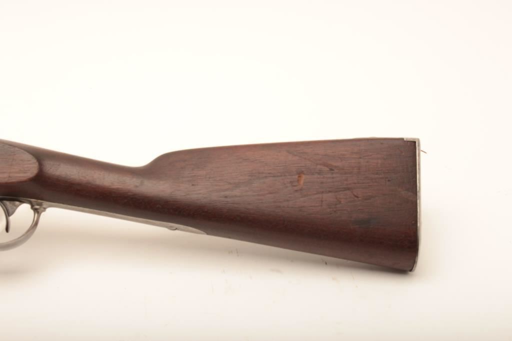 Springfield Model 1842 musket in .69 caliber with lock dated 1844 possibly used in Mexican American War. Very good plus condition showing lightly cleaned bright metal surfaces. Markings are slightly light on lock. Some scattered light pitting. Good “V.P.” and eagle head proofs. Stocks are also very good plus but show no cartouche which is often the case. No losses along ramrod channel. Some dings, mars and scratches of which none are major. Correct trumpet shaped ramrod. Tight and crisp action. A far better than average specimen we would rate on a 1-10 scale. Provenance: The Horse Soldier (Their descriptions listed as fine). The estate of Michael Sorenson. (Antique) Est.: $1250-$2500