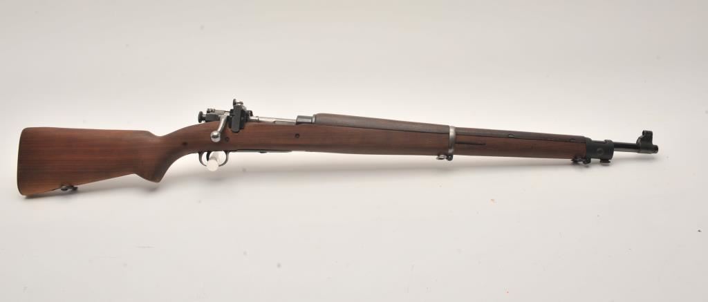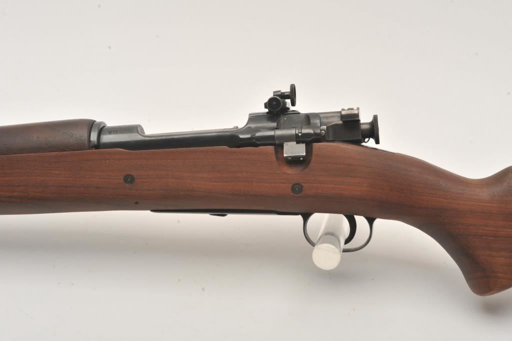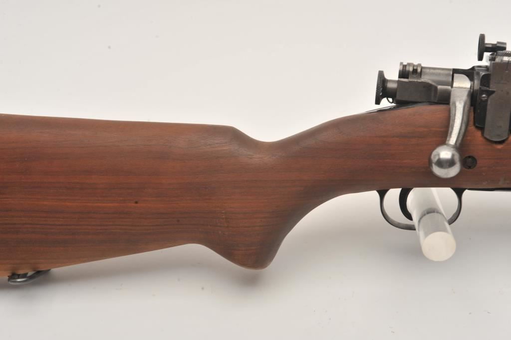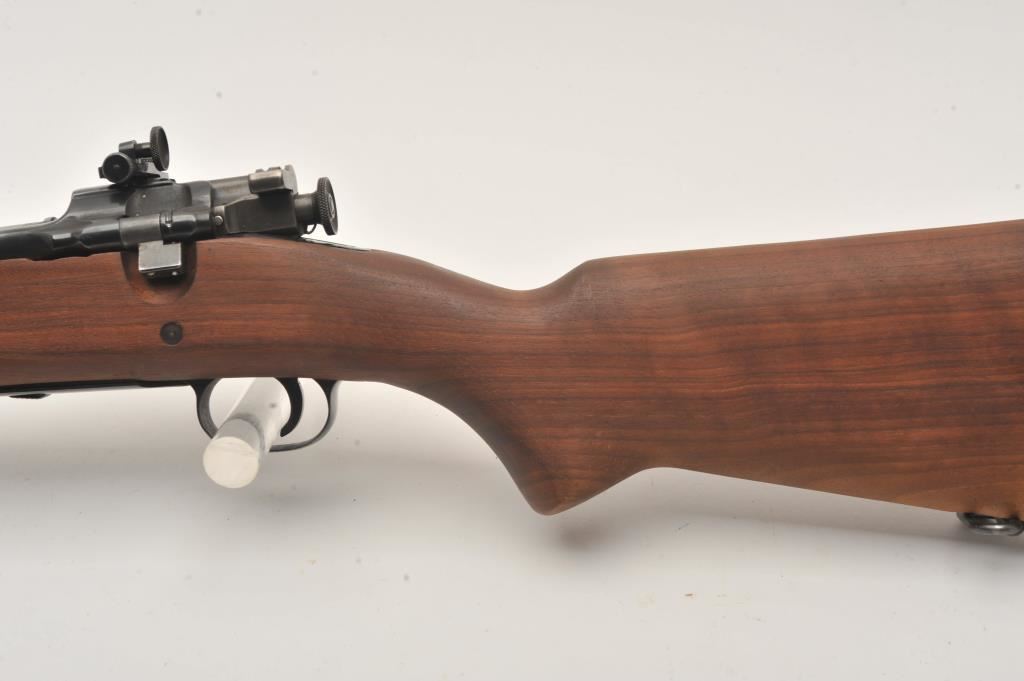 US Springfield Armory M1922 M1.1 .22 LR training target rifle. #10767, standard 24" barrel with Lyman rear sight. In very good condition overall. Old conversion to 1903/03-A3 stock which is in excellent like new condition. Comes with sling, bandolier and two magazines. Est:$500-1000