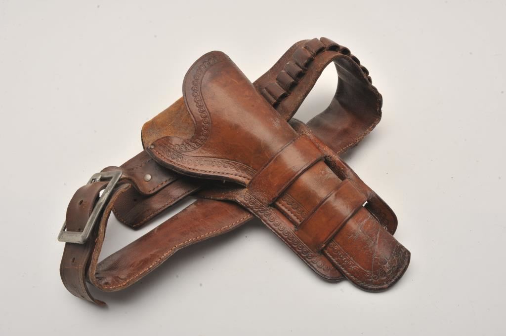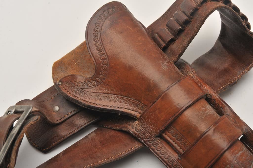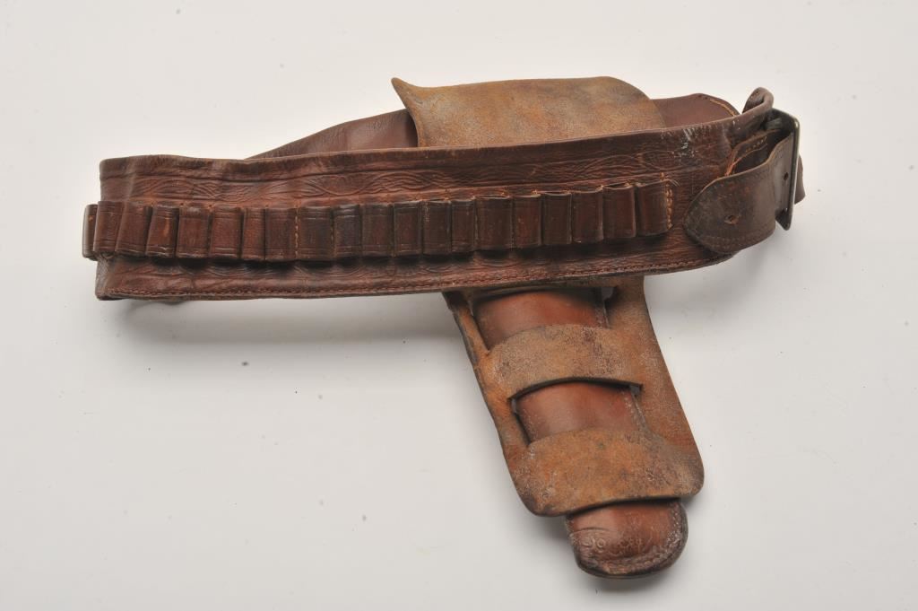 Leather double loop tooled holster with money/cartridge belt; 1870’s-90’s catalog style. Est.: $400-$800.