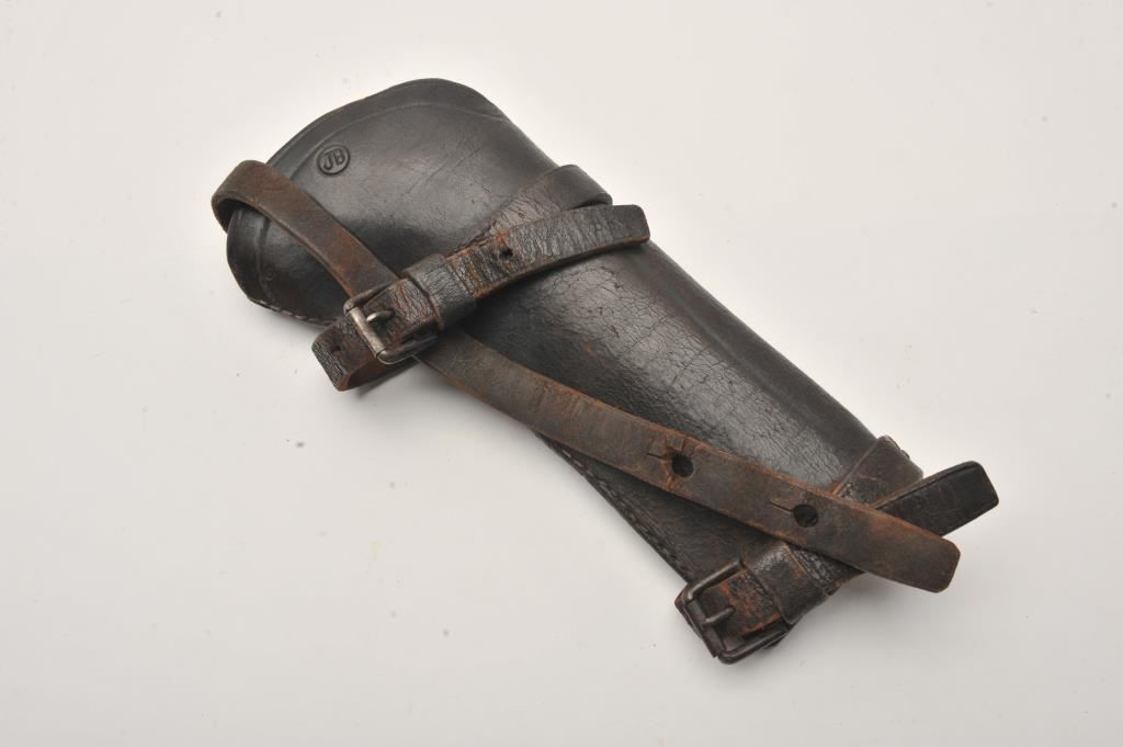 Early carbine leather boot (no brass) marked “Rock Island Arsenal” on left side and “JB” in circle on right side. Est.: $150-$300.