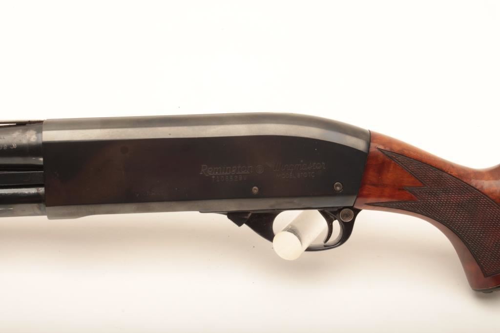 Remington Model 870TC Wingmaster pump action shotgun, 12 gauge, 30” ventilated rib barrel, blued finish, finely grained and checkered wood stocks, S/N T106529V; overall fine condition with fine bore, action, markings and wood. (Modern). Est.: $250-$450.