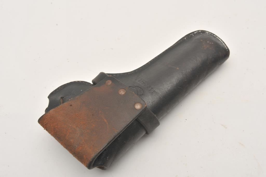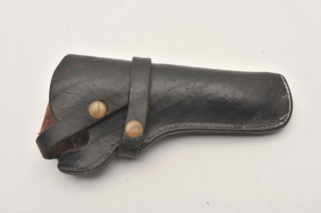 Ruger Single Six revolver, .22 caliber, 5.5” barrel, mat finish, wood medallion grips, S/N 364187; some scattered pitting near muzzle of barrel, crisp action, good markings and very good grips. Accompanied by a Hy Hunter holster. (Modern). Est.: $200-$400.