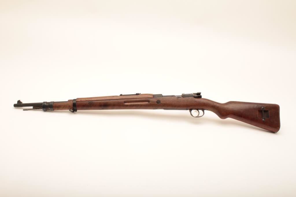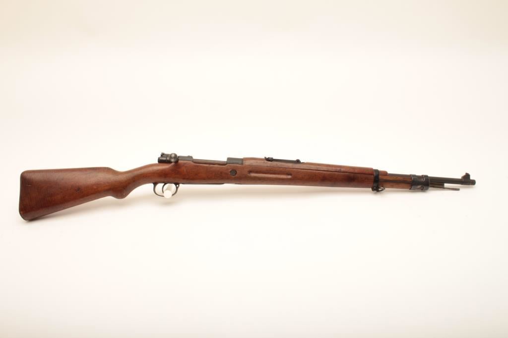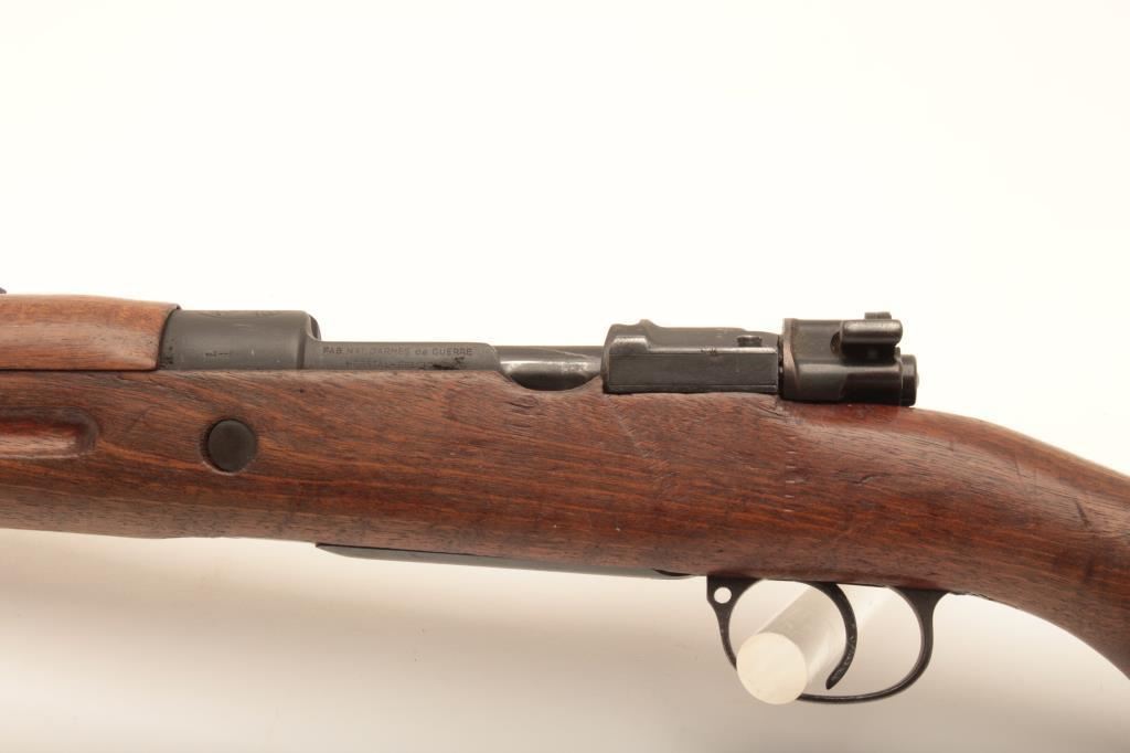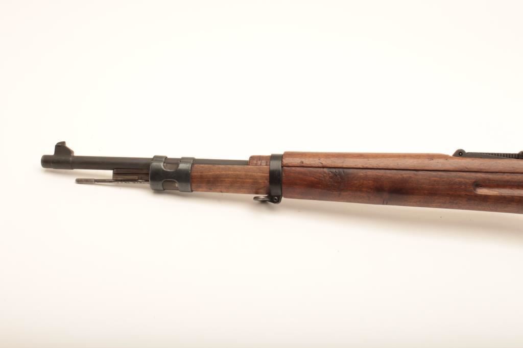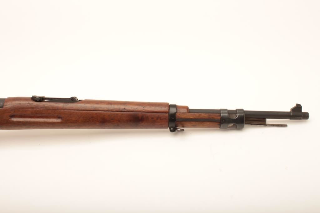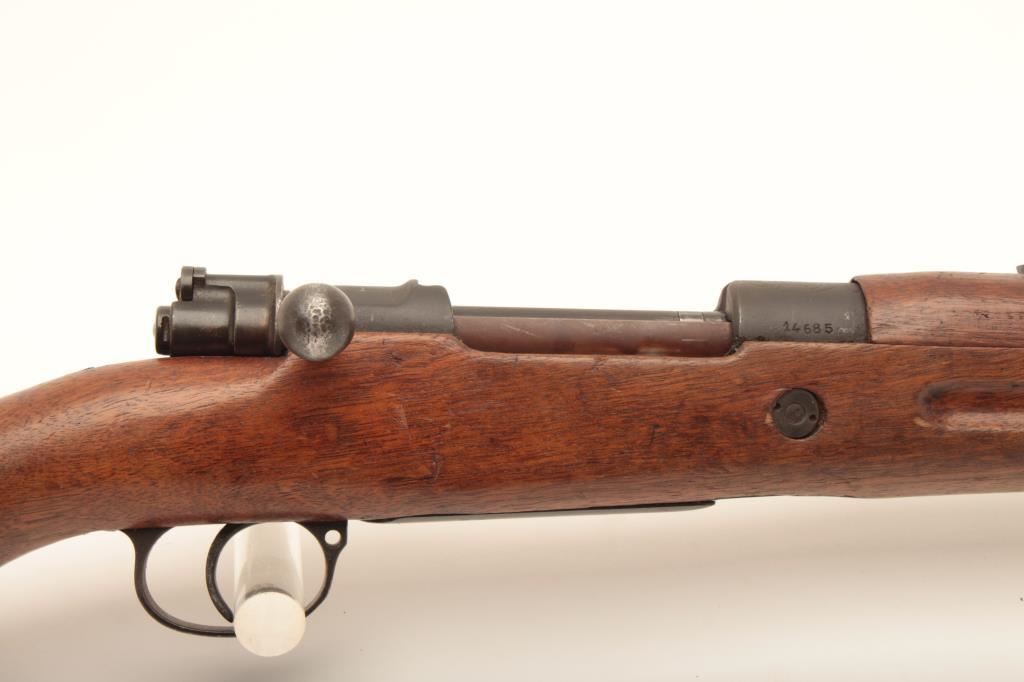 Colombian Mauser bolt action rifle, .30-06 caliber, 24” barrel with marking under muzzle “SPR SPTR PN RN PAT”; top of receiver stamped “30”; parkerized finish, wood stock, S/N 14685; overall good condition with majority of muted finish to metal surfaces, fair + bore, crisp action, good markings and good wood stock. (C&R). Est.: $200-$400.