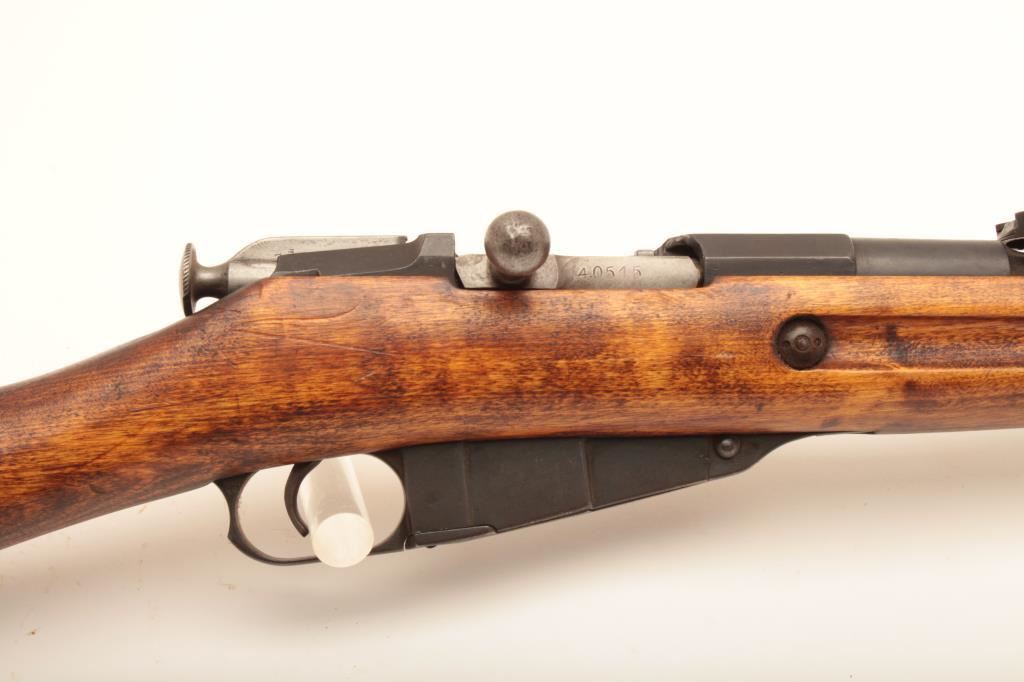 Finnish Mosin Nagant bolt action rifle, 7.62 x 54R caliber, 32” barrel, military blued finish, wood stock, missing cleaning rod, S/N 40515; overall good condition with import-marks, majority of military finish remaining on metal surfaces, dark bore, crisp action, good markings and overall good stock. (C&R). Est.: $200-$400.