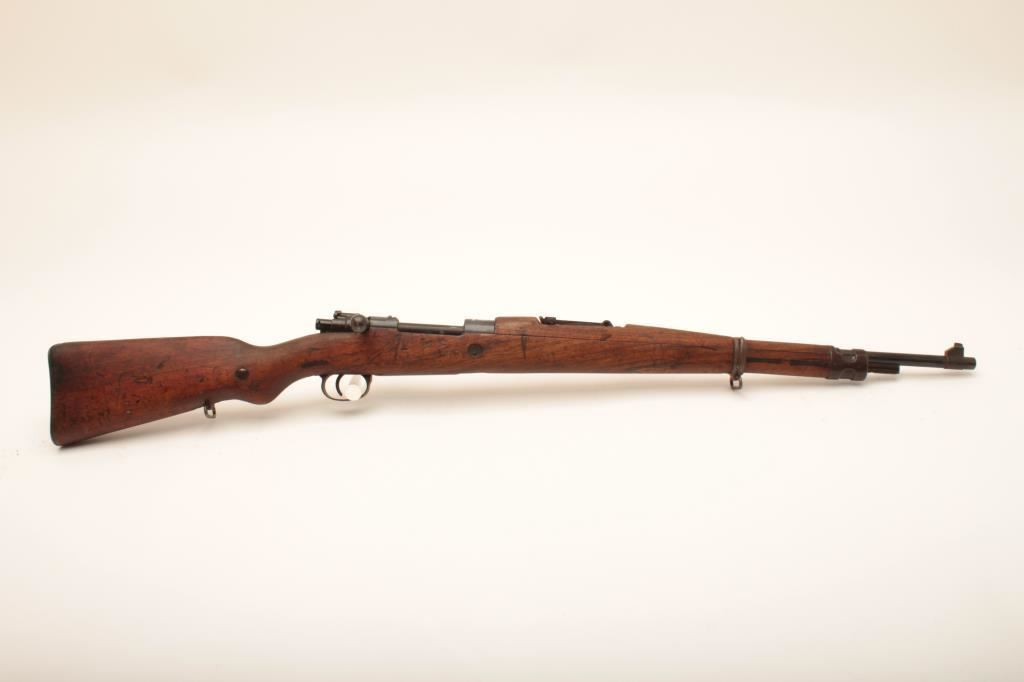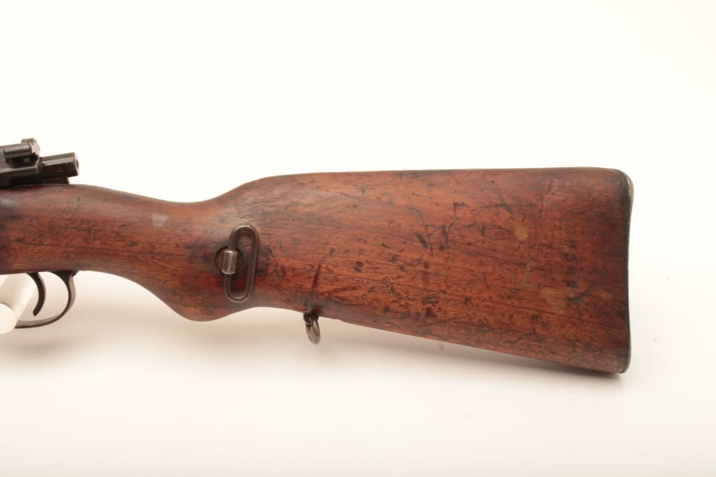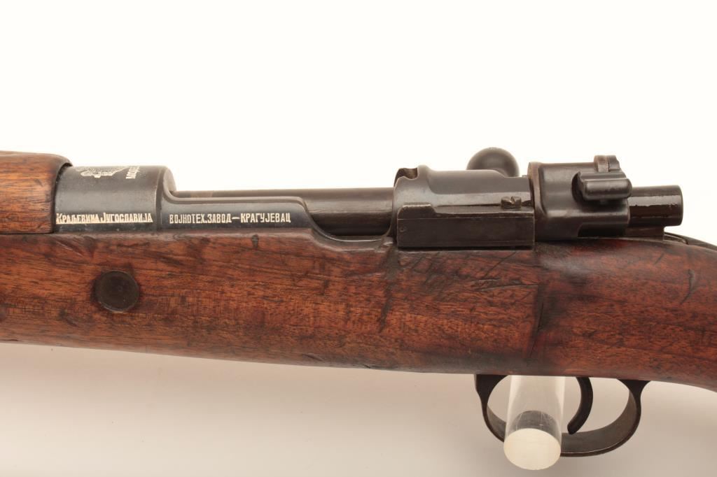 Yugoslavian Mauser Model 1924 bolt action rifle, 8mm caliber, 23.5” barrel, blued military finish, wood stock, S/N 158060; overall good condition with majority of muted blued finish remaining, good bore, crisp action, good+ markings and fair to good wood stock showing scattered old mars and scratches from carry and storage. (C&R). Est.: $200-$400.