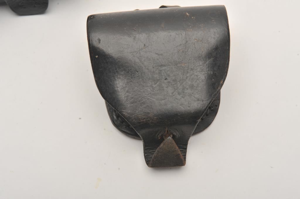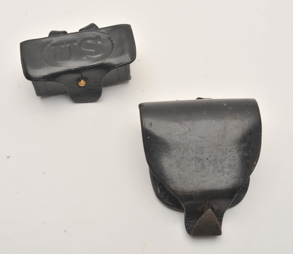 Lot of 2 U.S. leather cartridge pouches, both in overall good condition. Est.: $125-$250.