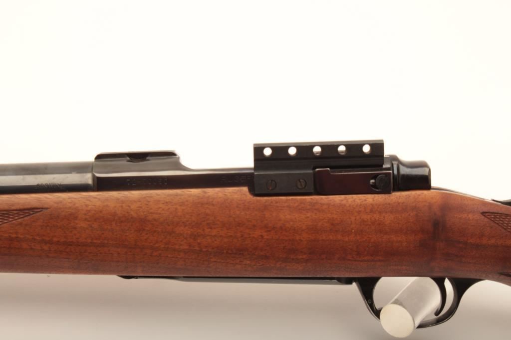 Ruger M77, #72-70050, .308 cal., 24" barrel, checkered walnut stock with factory rubber recoil pad. Rifle is in very good to near excellent condition, showing 96-98% original finish, with the majority of the wear to the mag well and trigger guard. Stock shows minimal handling marks, and forend has been relieved for palm rest and precision sling rail. Bore is bright, action is crisp. Side of receiver has been drilled and tapped for a receiver sight. (Modern) Est. $300-600