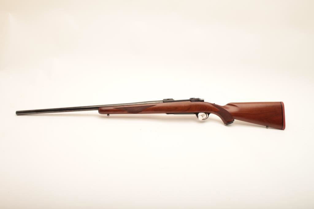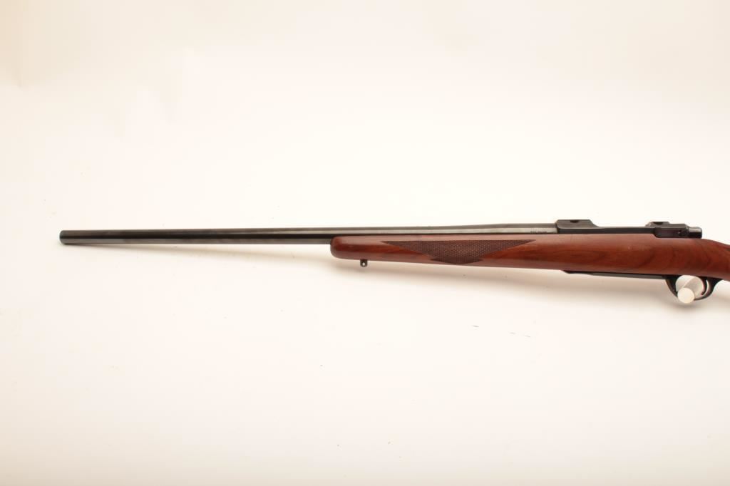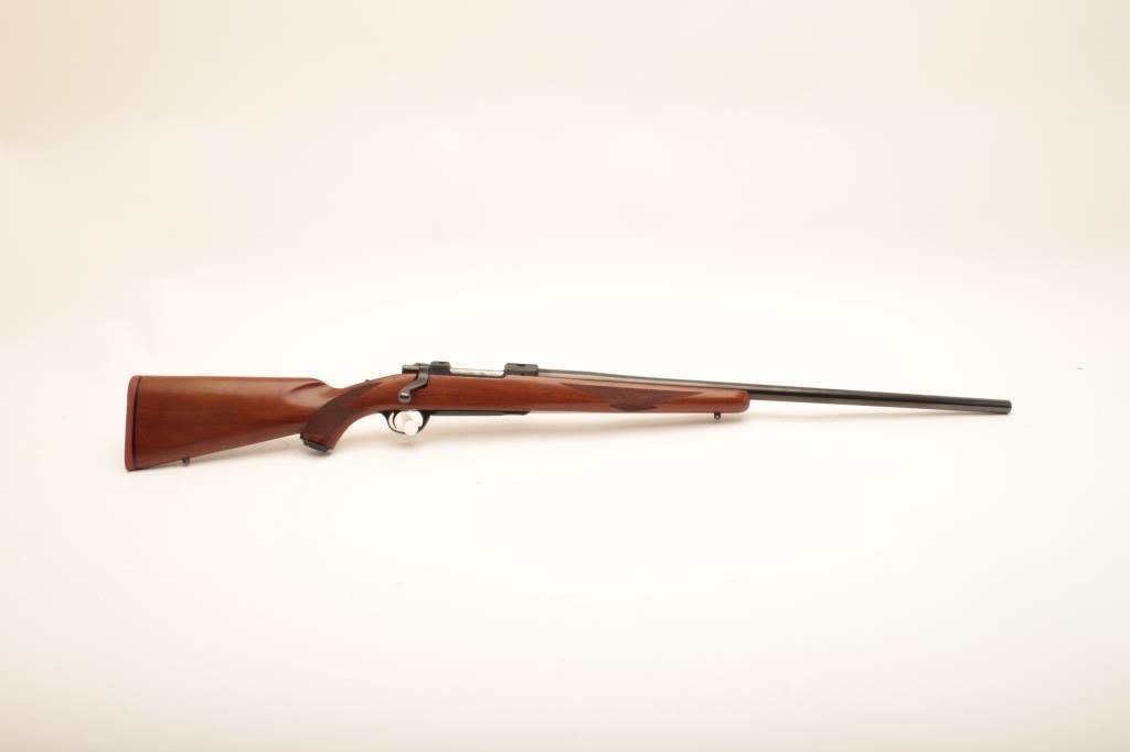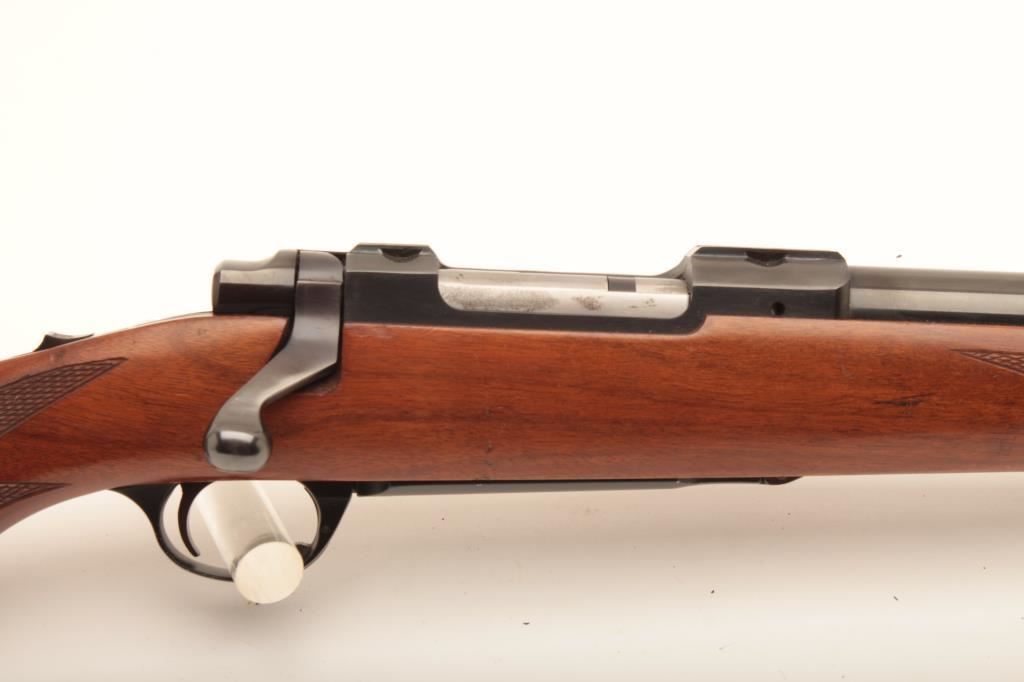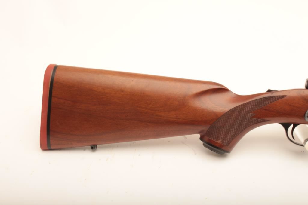 Ruger M77, #70-82736, 220 Swift cal., 26" barrel, checkered walnut stock with factory rubber recoil pad. Rifle is in near excellent condition, showing 98%+ original finish, stock shows minimal handling marks. Bore is bright, action is crisp. (Modern) Est. $300-600