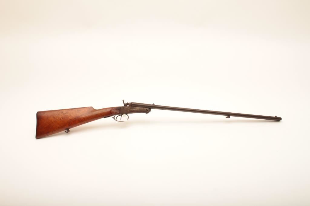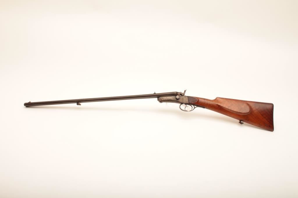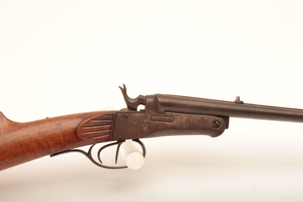 European SxS combination gun in 9mm shot and .22 caliber, ca. 1890’s, 24” barrels, dark patina to metal surfaces, wood butt stock, overall good condition with good action, good bores and good wood. (Antique). Est.: $300-$600.