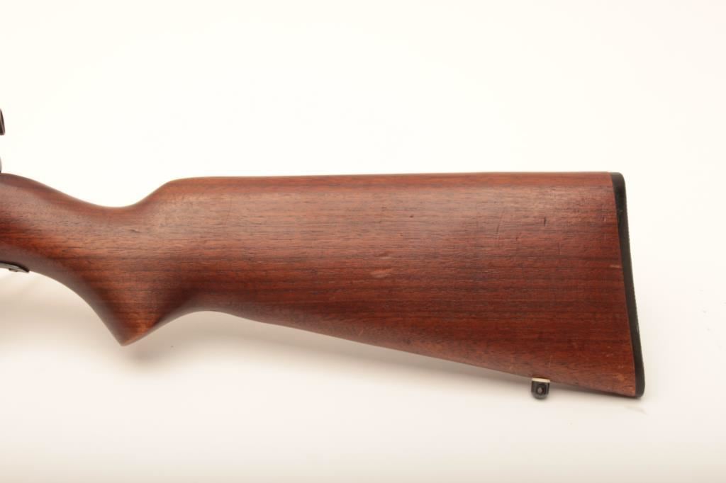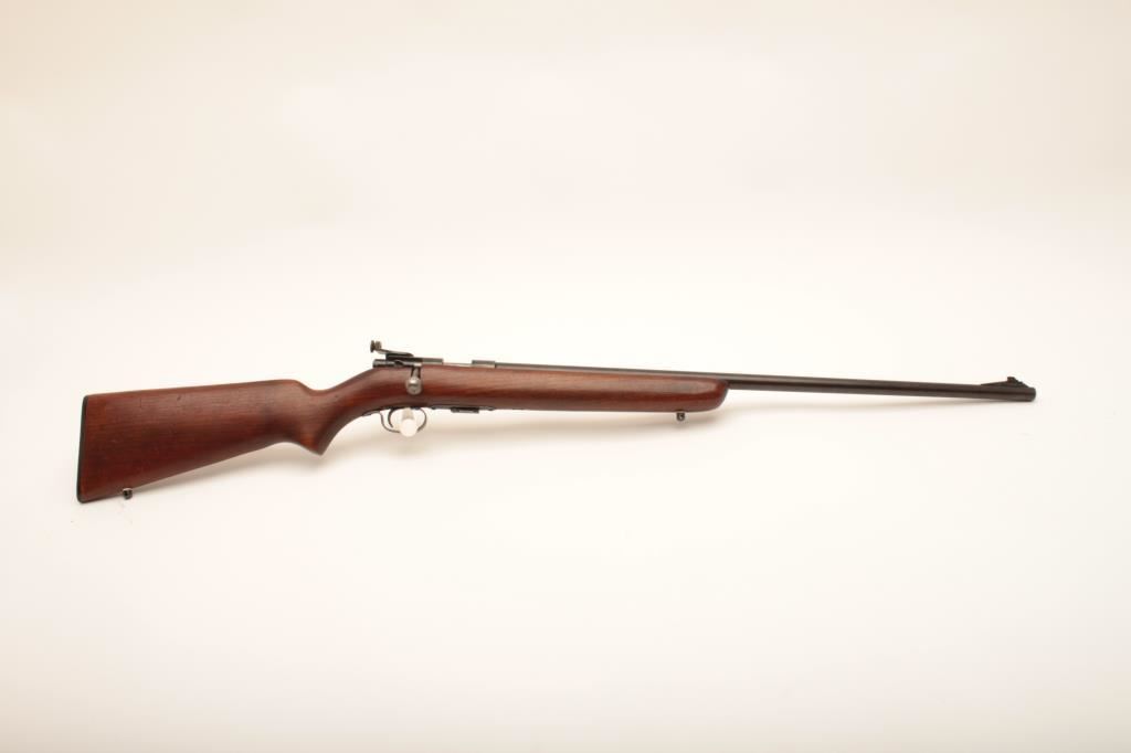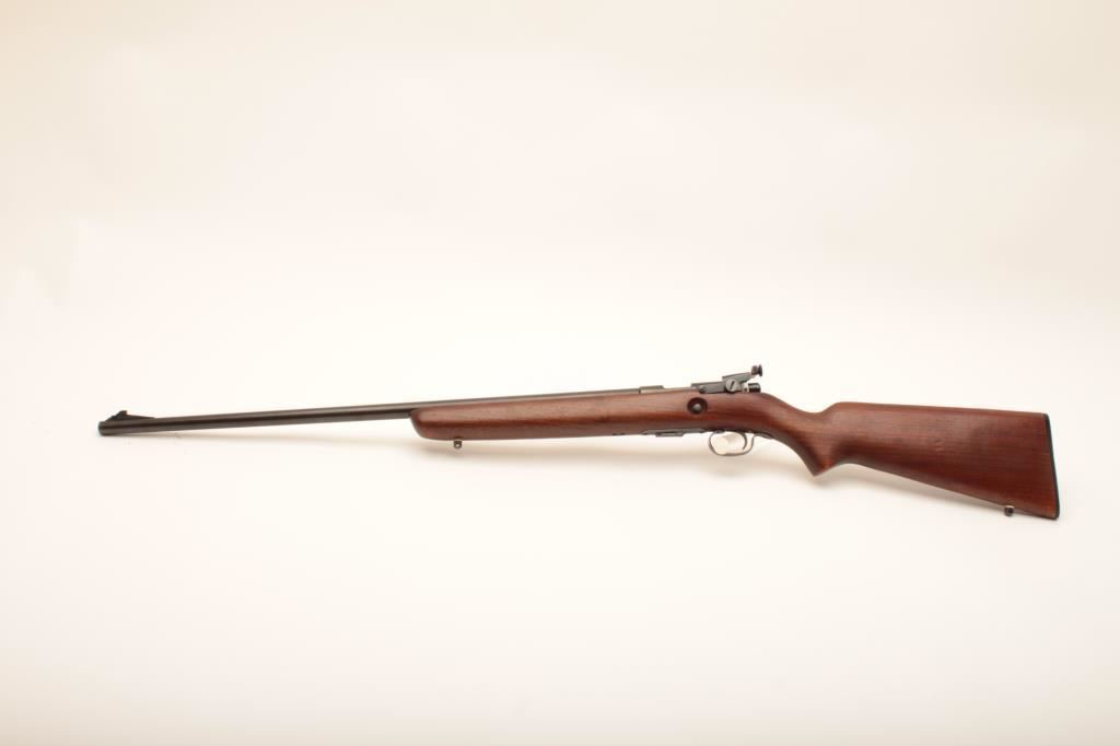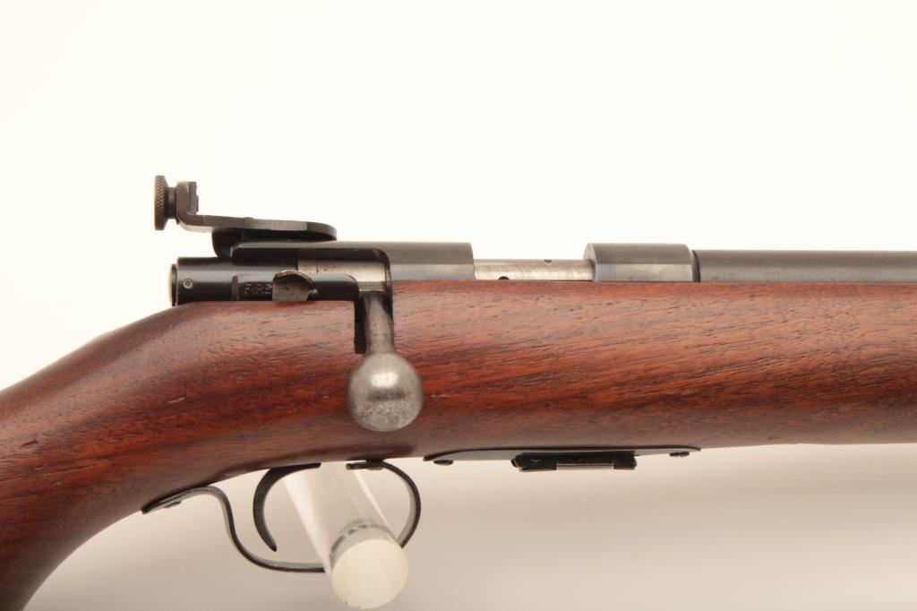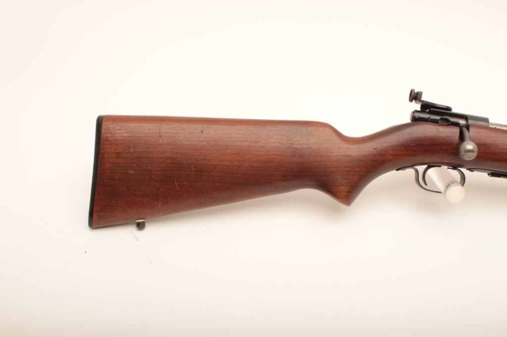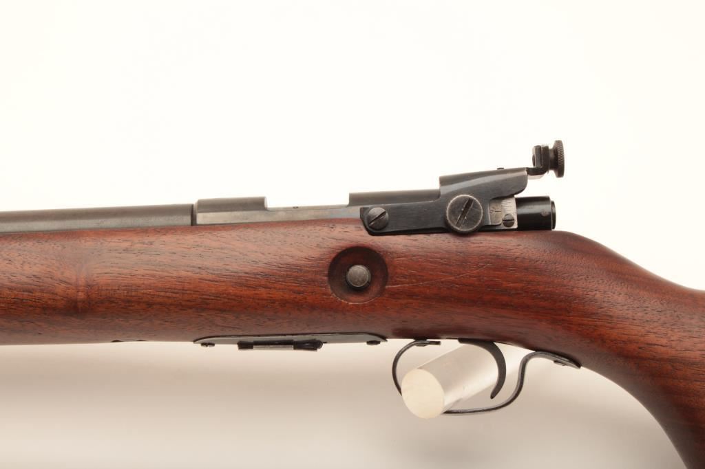 Winchester 69A #NSNV, 22 Short cal., 25 1/4" barrel, blued finish, receiver peep sight with smooth walnut stock with studs for sling swivels. Rifle is in good condition overall, showing the majority of it's original finish, whichh is thinning, stock is good with no chips or cracks. Action is good, bore is good. (C&R) Est. $100-200
