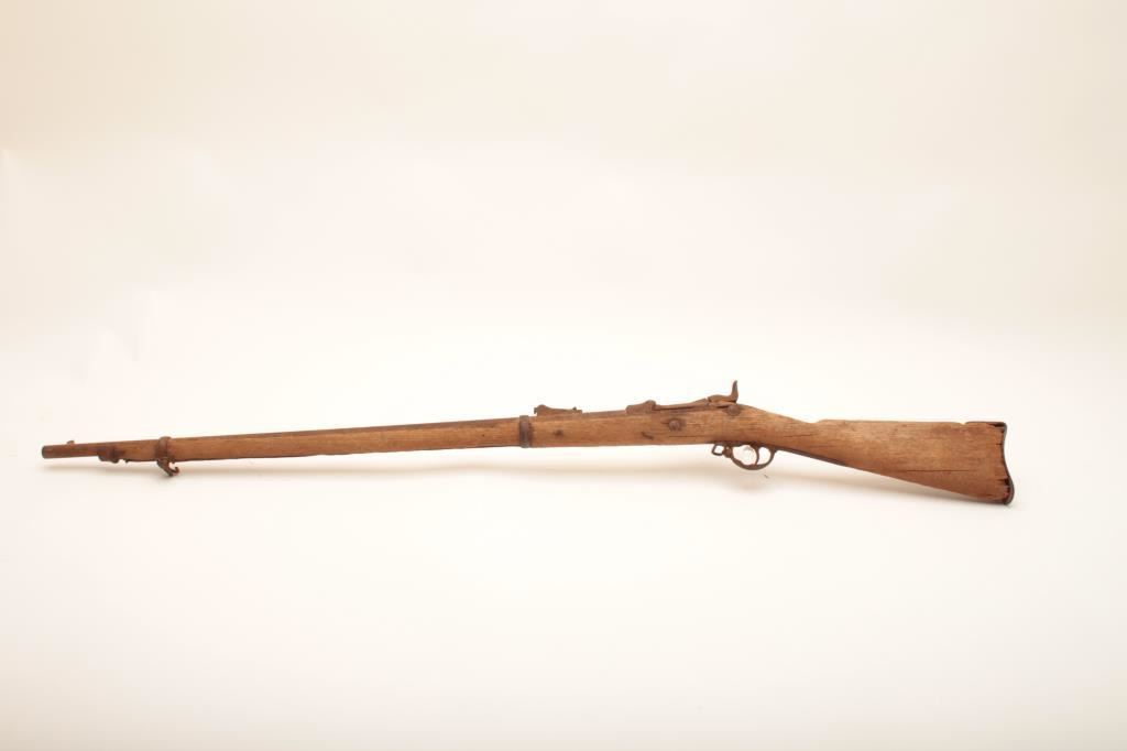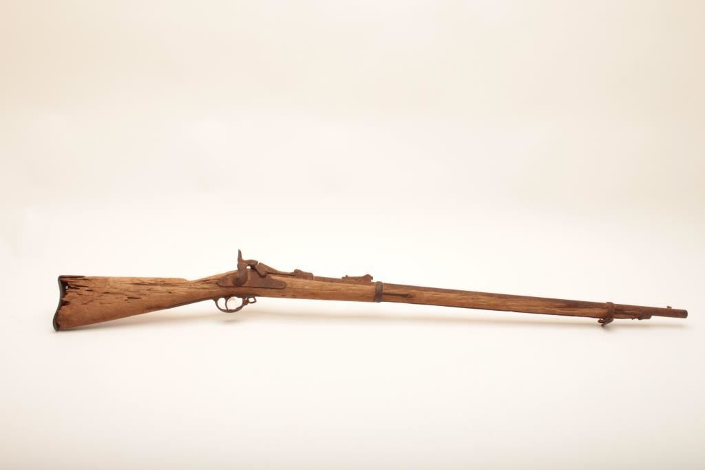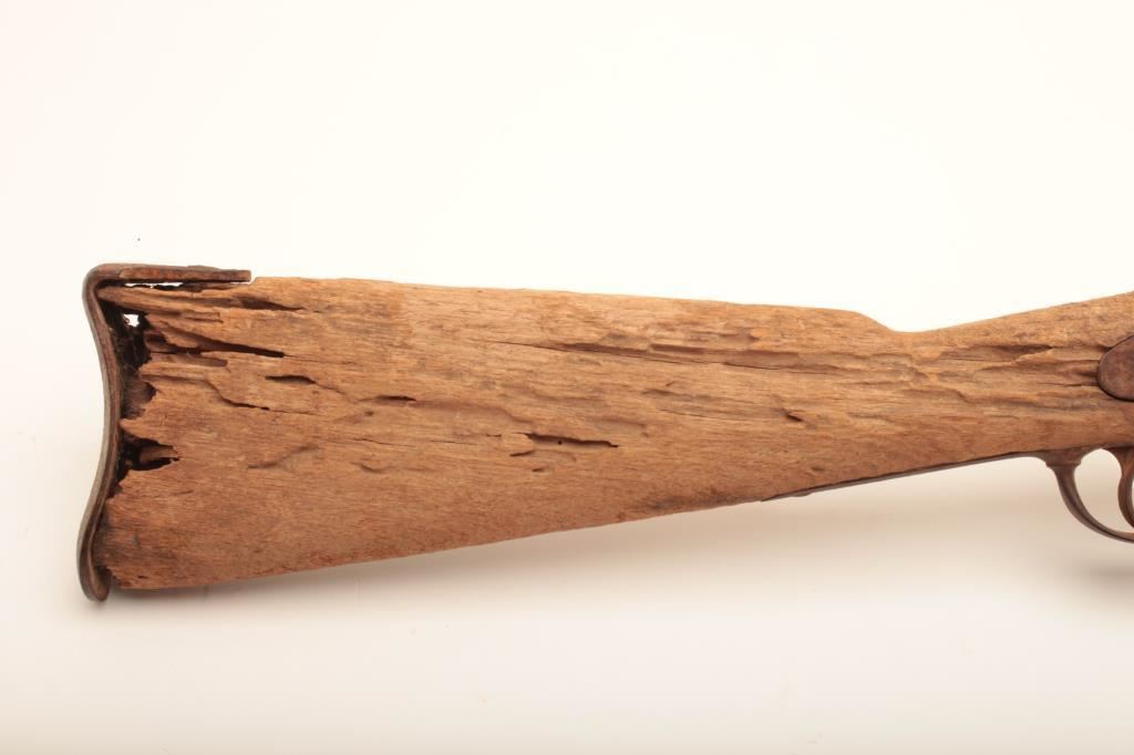 Relic U.S. Springfield trapdoor rifle, tag states “Desert Found”; years of rust to metal parts, stock is dried out; classic look! (Antique relic). Est.: $200-$400.