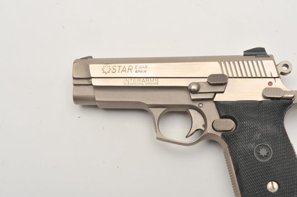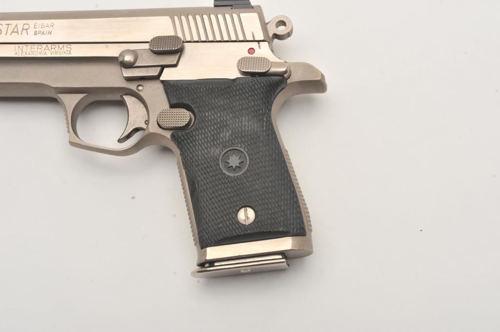 Star Firestar compact semi-automatic pistol, .40 S & W caliber, Serial #2109573. The pistol is in excellent overall condition in the factory plastic case with a 3 ¼” barrel. The pistol retains nearly all of its stainless steel finish with only storage marks. The checkered rubber grips are in very good condition showing little wear. The bore is very good, the action is crisp and the markings are sharp. The lot includes one correct magazine. Est.: $275-$550. (Modern/PPT).