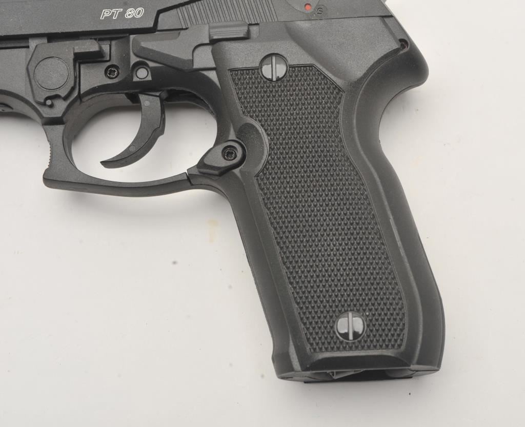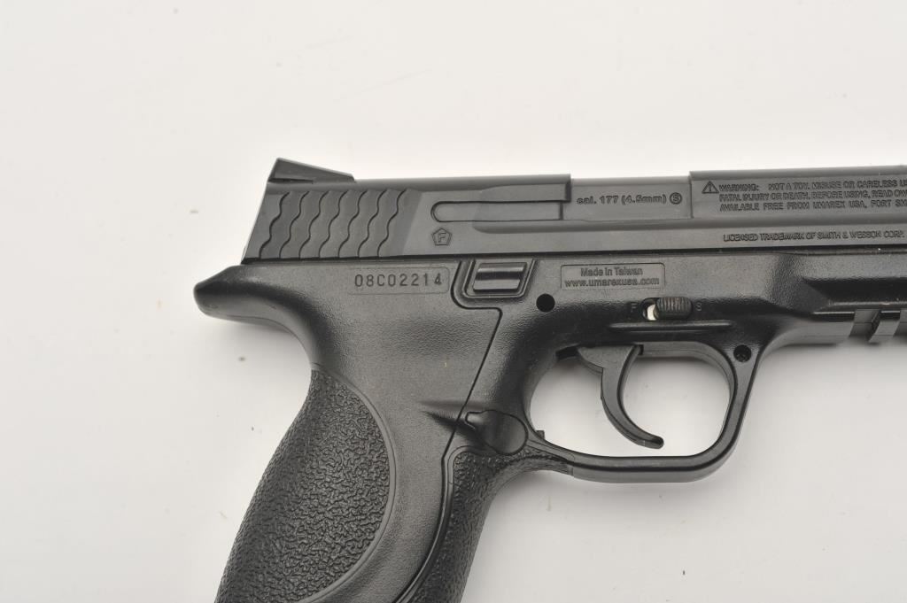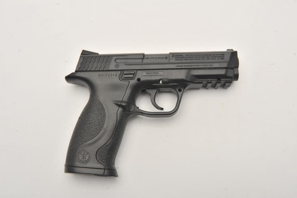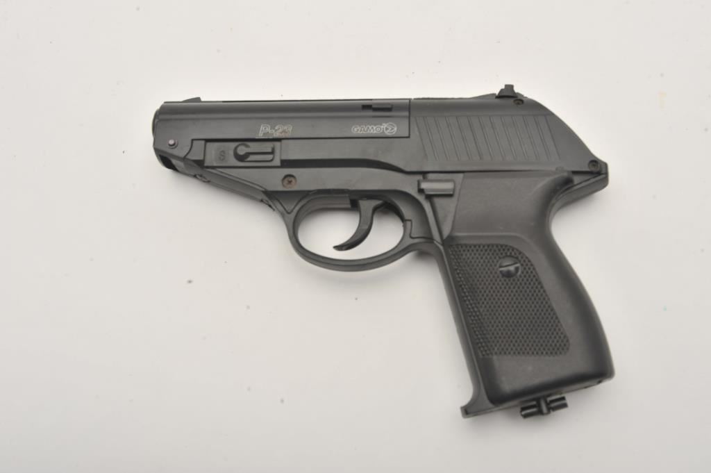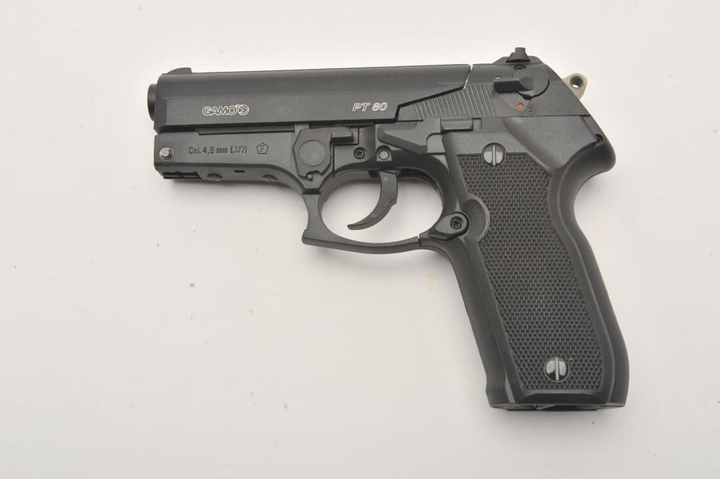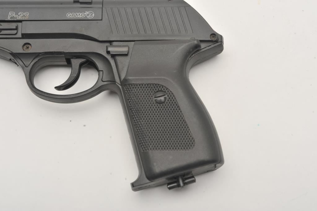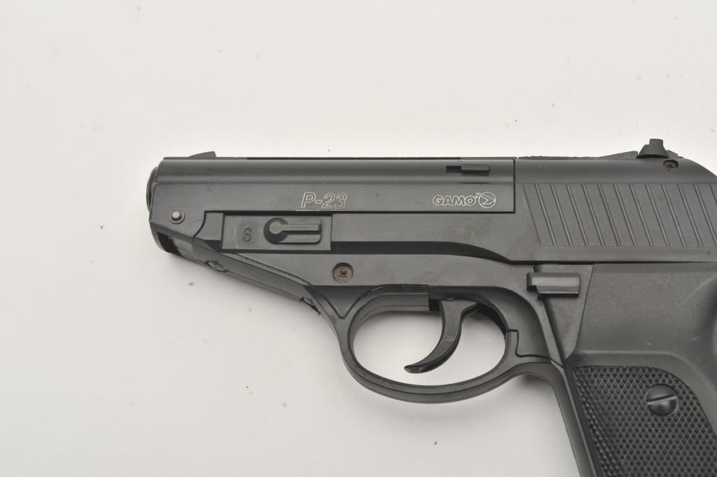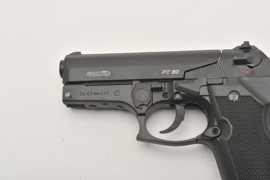 Lot of three .177 caliber CO2 air pistols. The lot includes Gamo Models P-23 and PT 80 pistols both in good overall condition and a Smith & Wesson Model MP40 air pistol also in good condition. Est.: $75-$150.