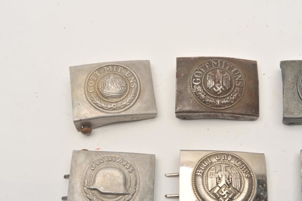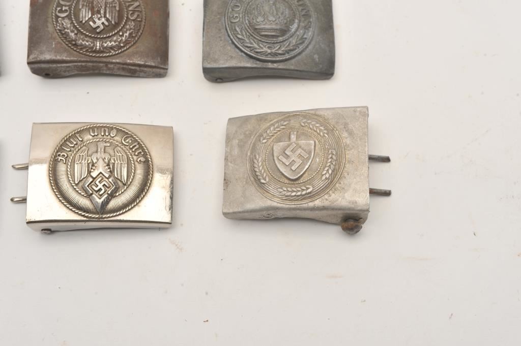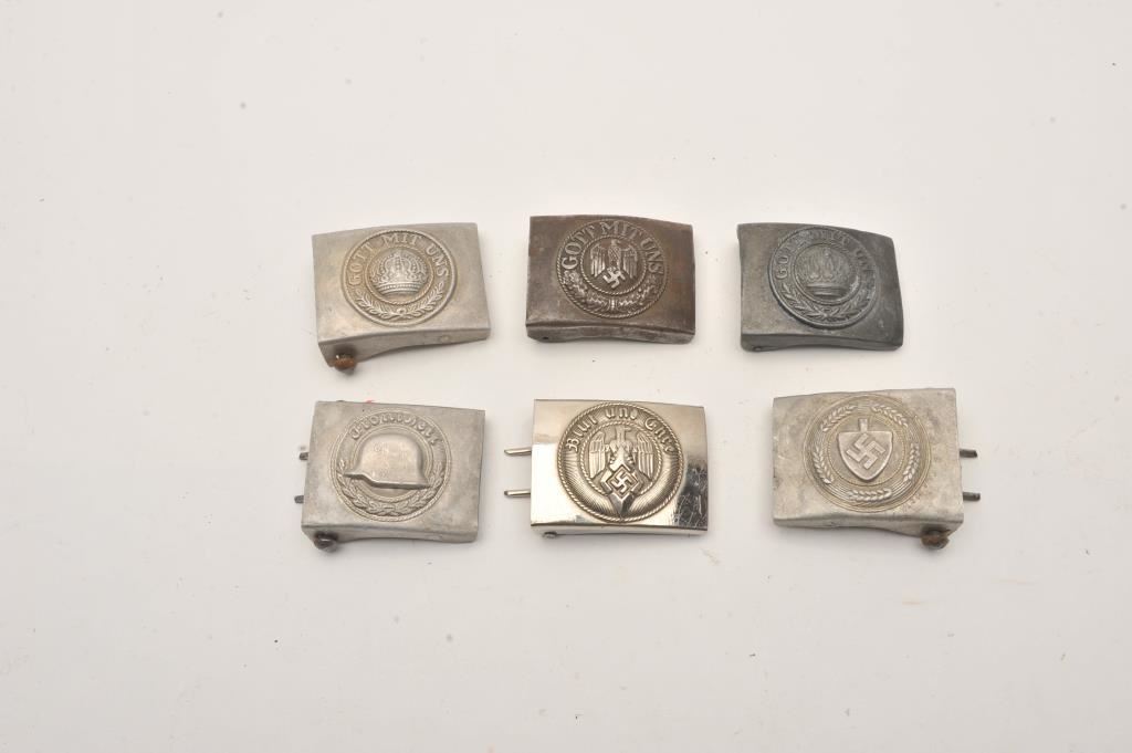 Lot of 6 German WWI and WWII belt buckles. Varied condition from good to very good. Est.: $100-$200