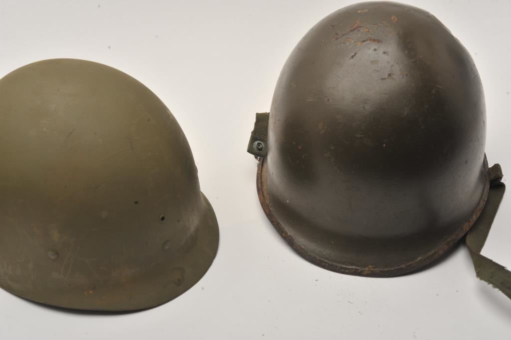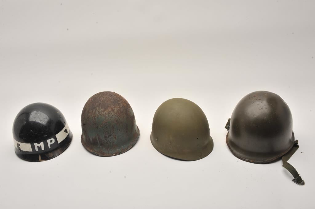 Lot of 4 U.S. helmets various ages and condition. Est.: $150-$300