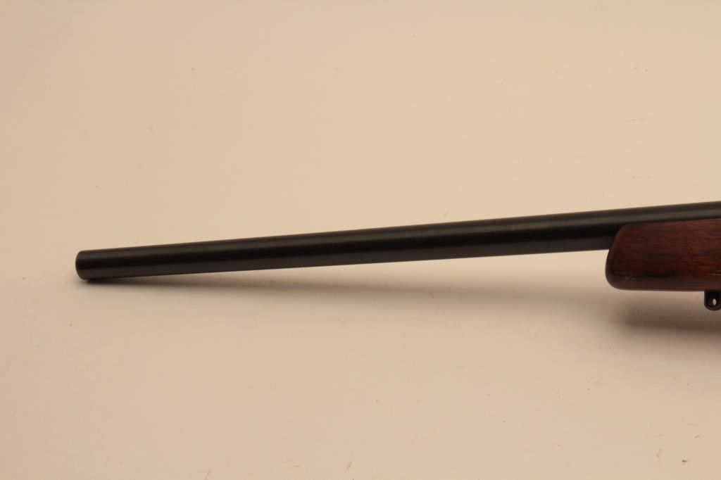 Mossberg Model 1500 bolt action rifle, .223 Remington caliber, Serial #M018709. The rifle is in minty overall condition with a 22” barrel. The metal surfaces retain nearly all of their blue finish with only light handling marks. The barrel is marked, “MADE BY HOWA IN JAPAN” and the receiver is drilled and tapped for scope mounting. The checkered wood stock is in excellent condition with sharp checkering and a Mossberg marked plastic butt plate. The bore is very good, the action crisp and markings are sharp on this lightly used Mossberg by Howa. The lot includes a set of RCBS reloading dies. Est.: $200-$400. (Modern).