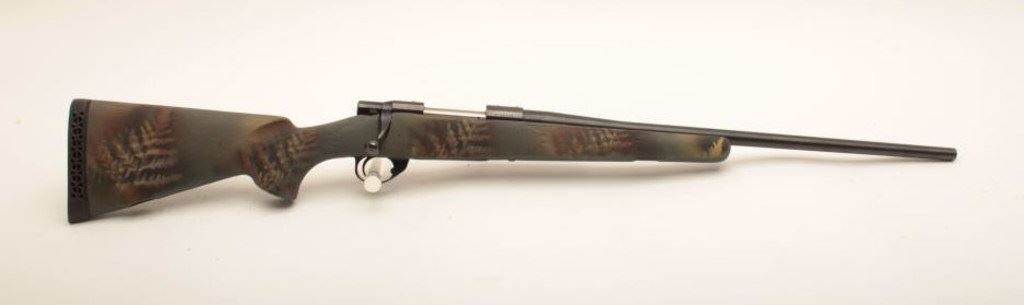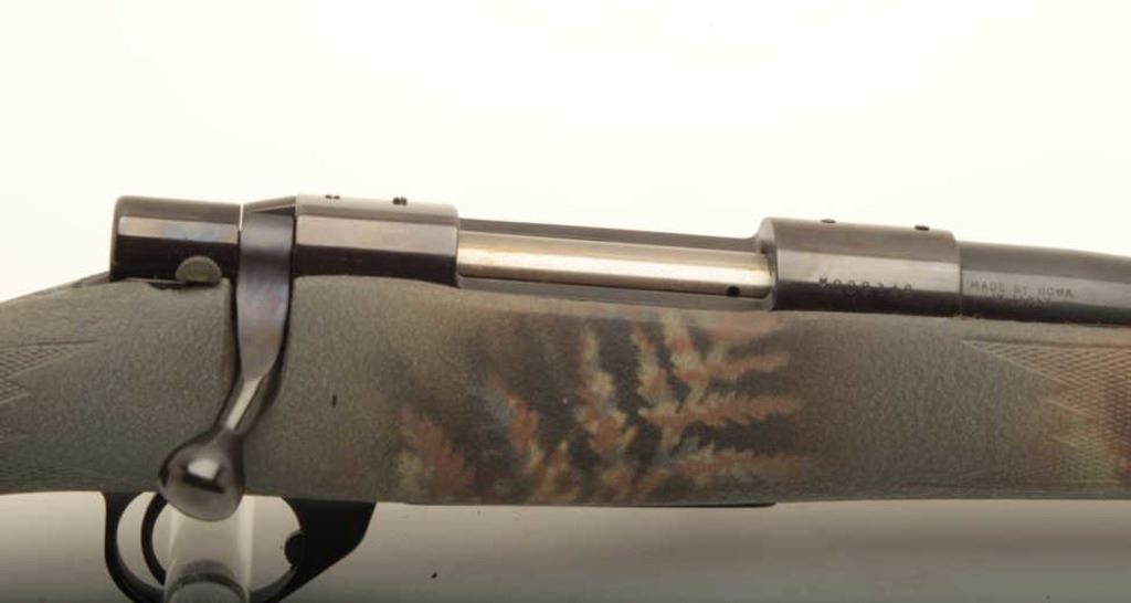 Mossberg Model 1500 bolt action rifle, .243 Winchester caliber, Serial #M009346. The rifle is in fine overall condition with a 22” barrel. The metal surfaces retain nearly all of their blue finish with only light handling marks. The barrel is marked, “MADE BY HOWA IN JAPAN” and the receiver is drilled and tapped for scope mounting. The synthetic camouflage pattern Bell & Carlson stock is in very good condition and ends with a ventilated rubber B&C recoil pad. The bore is very good, the action crisp and markings are sharp on this lightly used Mossberg by Howa. The lot includes a set of RCBS reloading dies. Est.: $200-$400. (Modern).