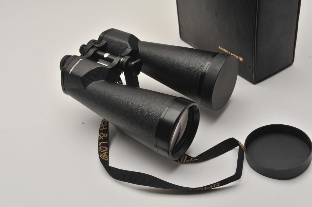 Bausch & Lomb Astronomical 20 x 80 binoculars. These large binoculars have a mounting plate already attached at the base. The optics are good and the lot includes a case with all associated packaging materials. Est.: $100-$200.