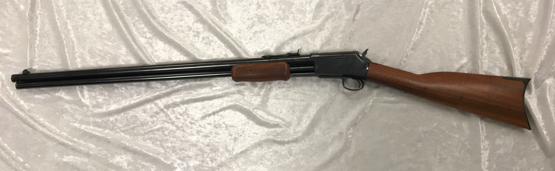 Taurus Model C-45 pump action rifle (copy of the Colt Lightning rifle), .45 Colt caliber, 26” round barrel, blued finish, wood stocks, S/N AT9229; overall fine condition with majority of original finish, fine bore, action, markings and wood. (Modern). Est.: $350-$700.