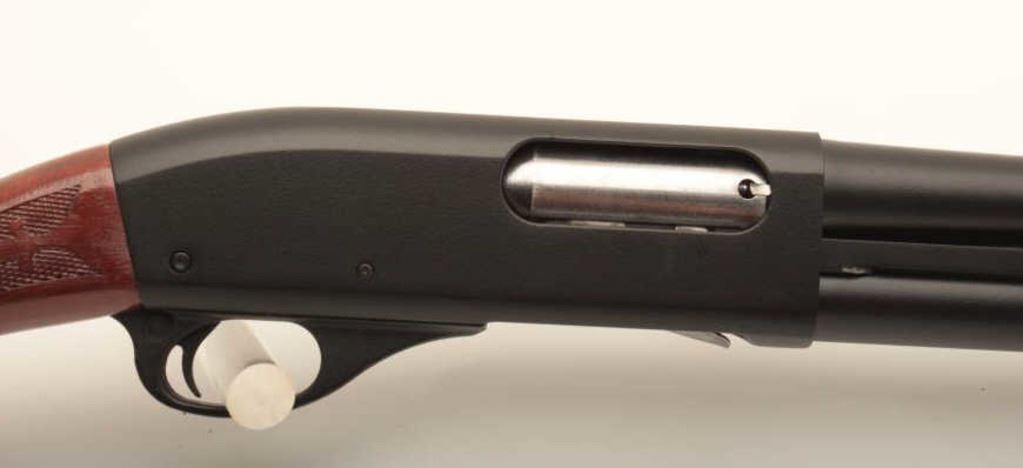 Remington Model 870 Police Magnum pump action shotgun, 12 gauge, 20” barrel, mat black finish, wood stocks, S/N C143735M; overall very good to fine condition with majority of finish remaining, fine bore, crisp action, sharp markings and fine wood (Modern). Est.: $175-$350.